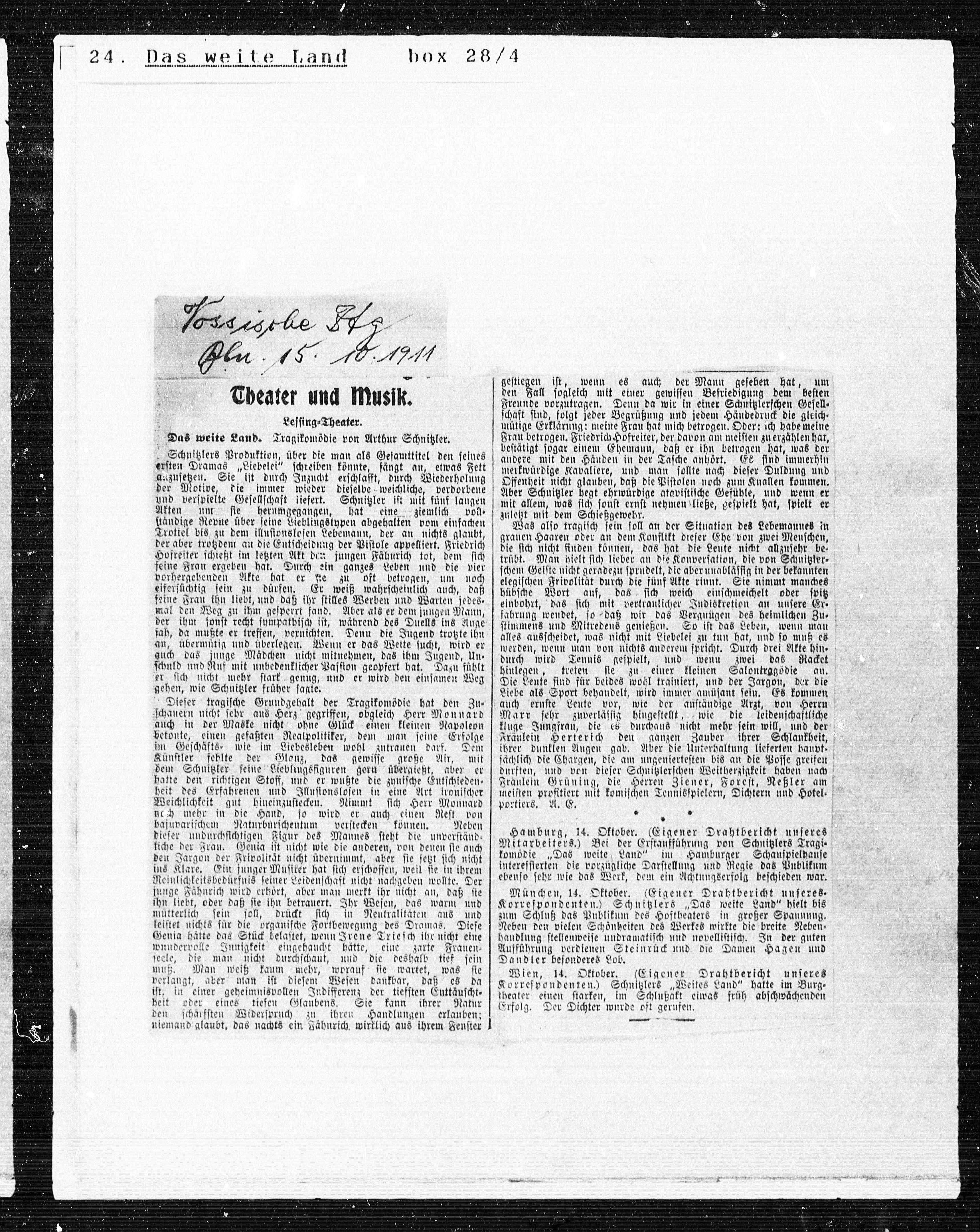 Korrespondenten.) Schnitzlers „Das weite Land“ hielt bis