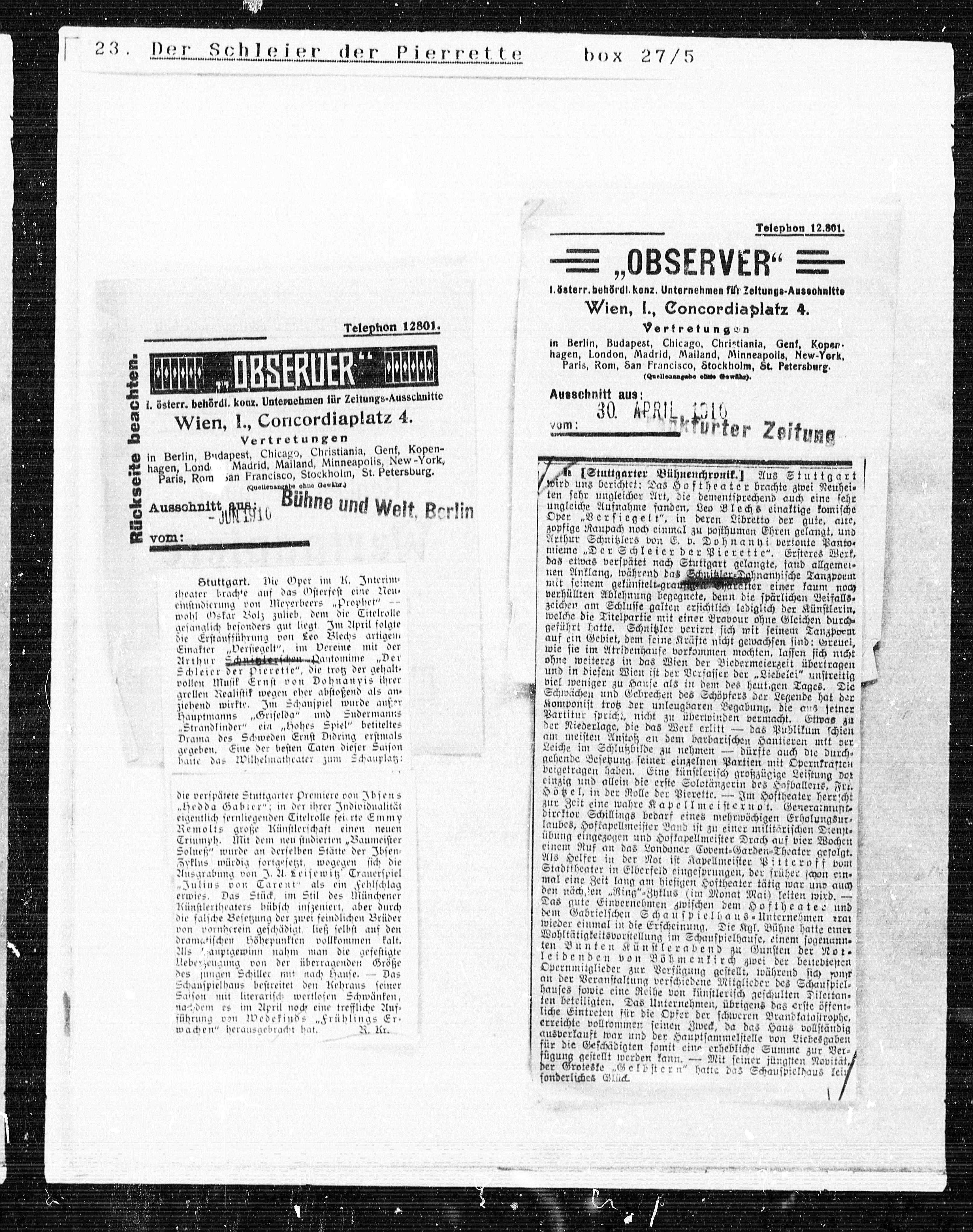 I. österr. behördl. konz. Unternehmen für Zeltungs-Ausschnitte