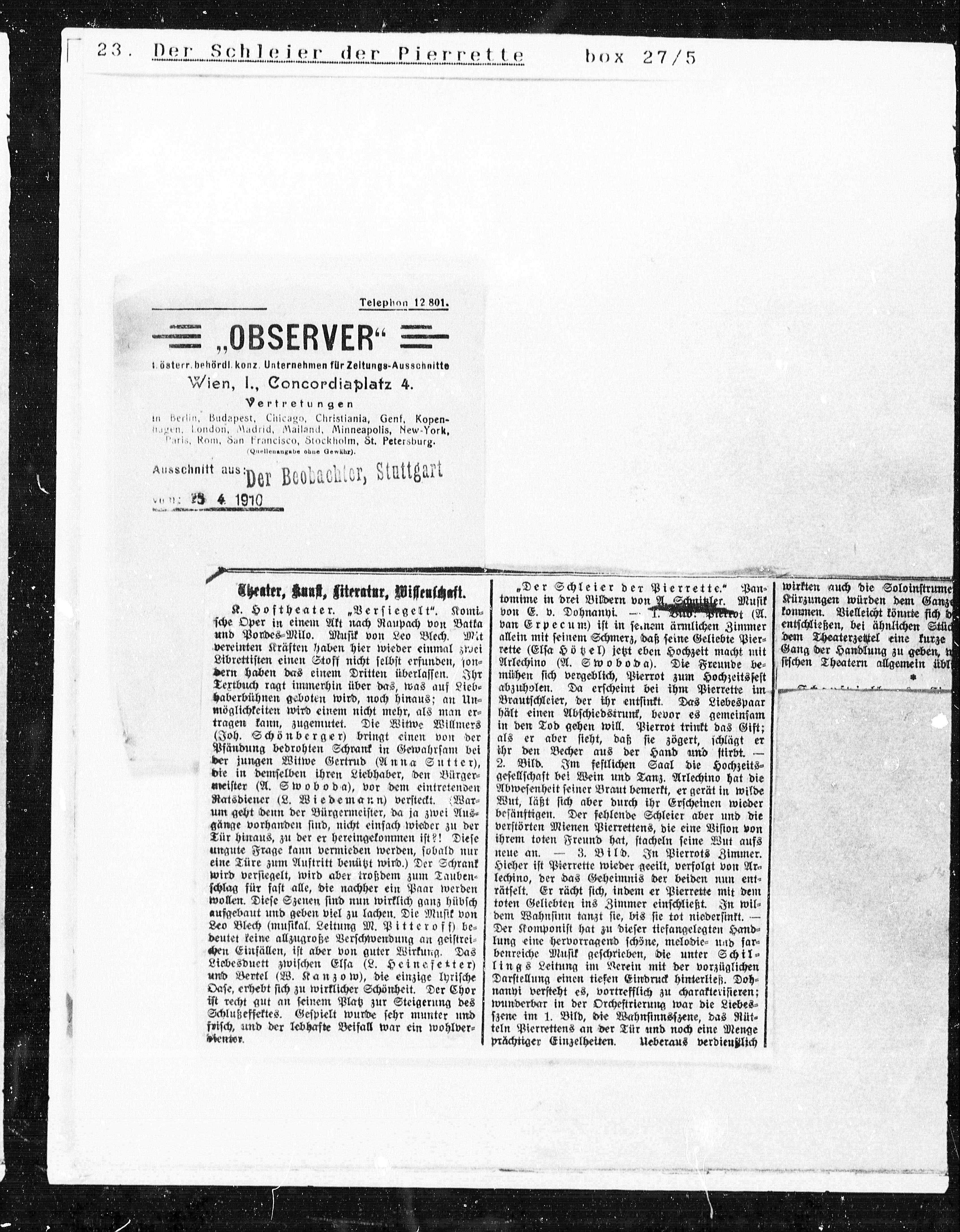 1 österr. behördl.konz. Unternehmen für Zeitungs-Ausschnltte