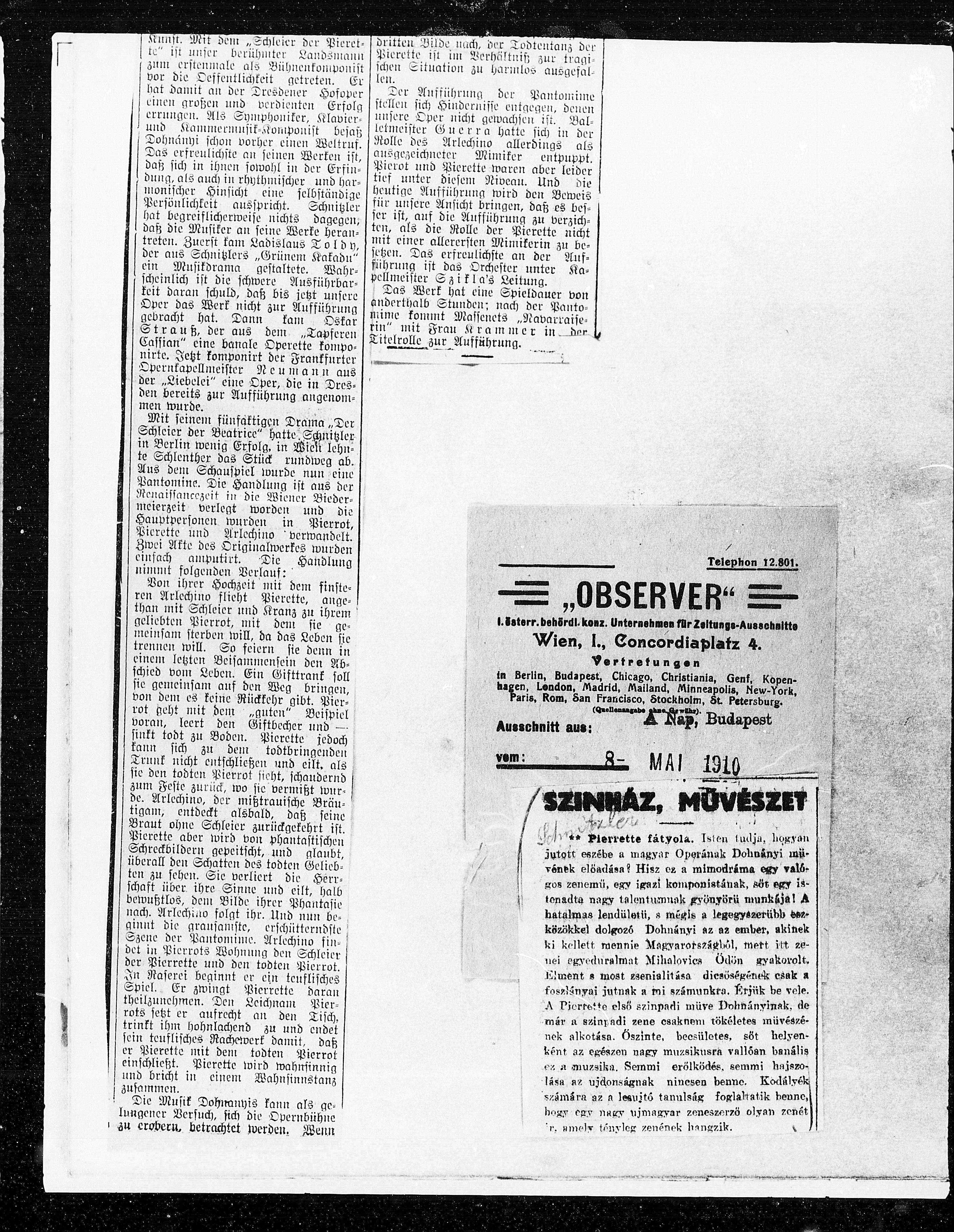 A Pierrette elsö szinpadli müre Dohnänyinak, de