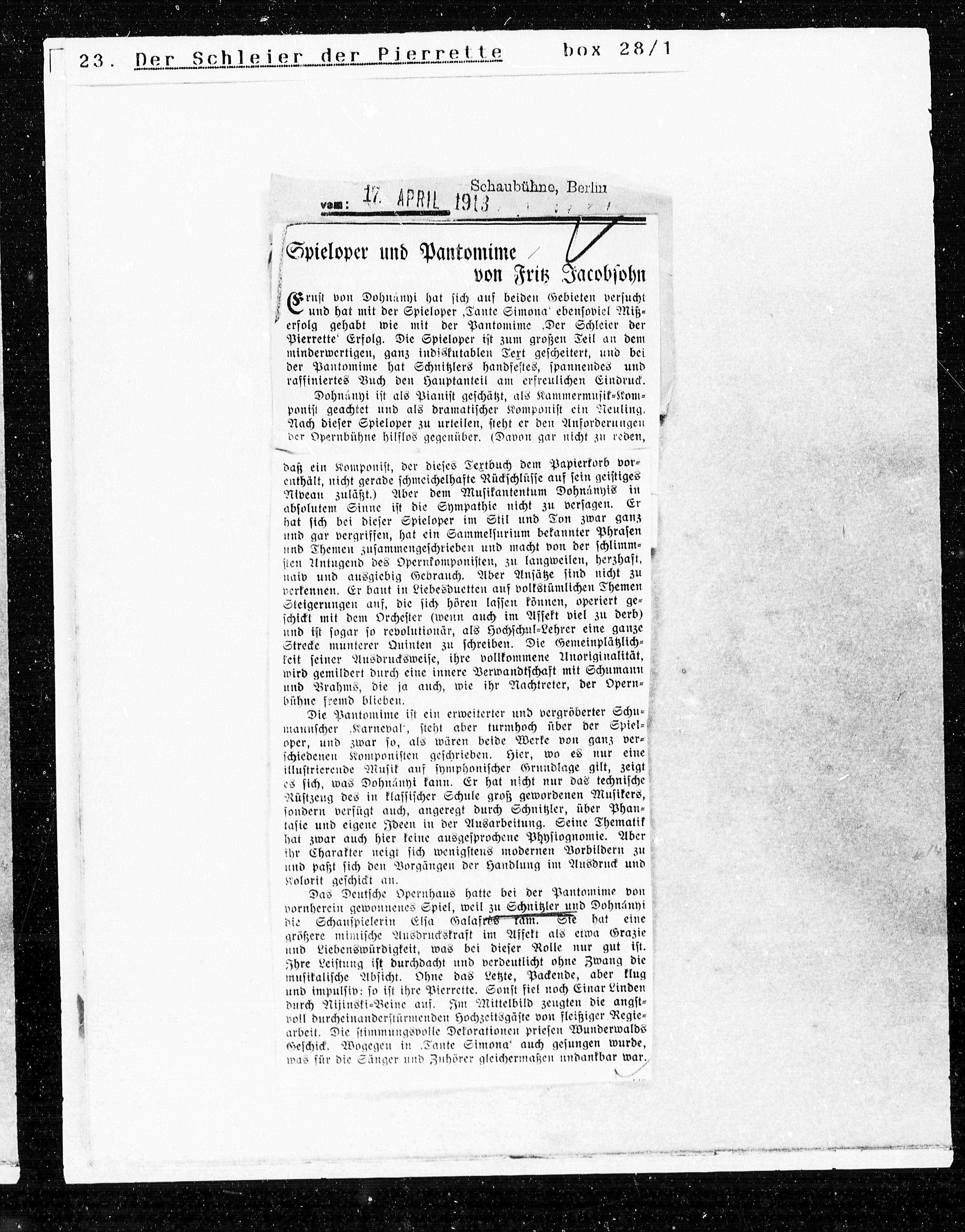 vornherein gewonnenes Spiel, weil zu Schnitzler und Dohnänyi