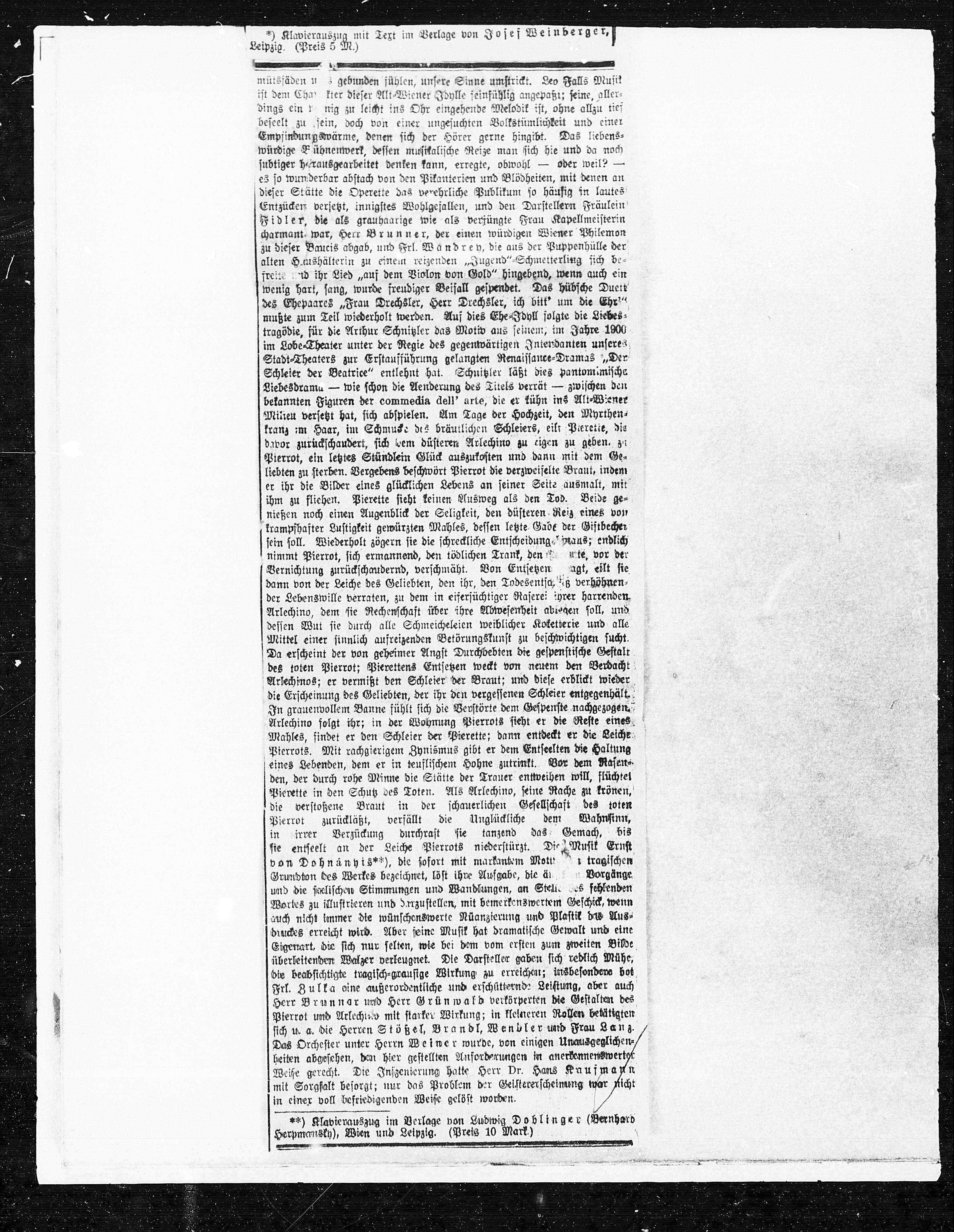 **) Klavierauszug im Verlage von Ludwig Doblinger (Bernhard