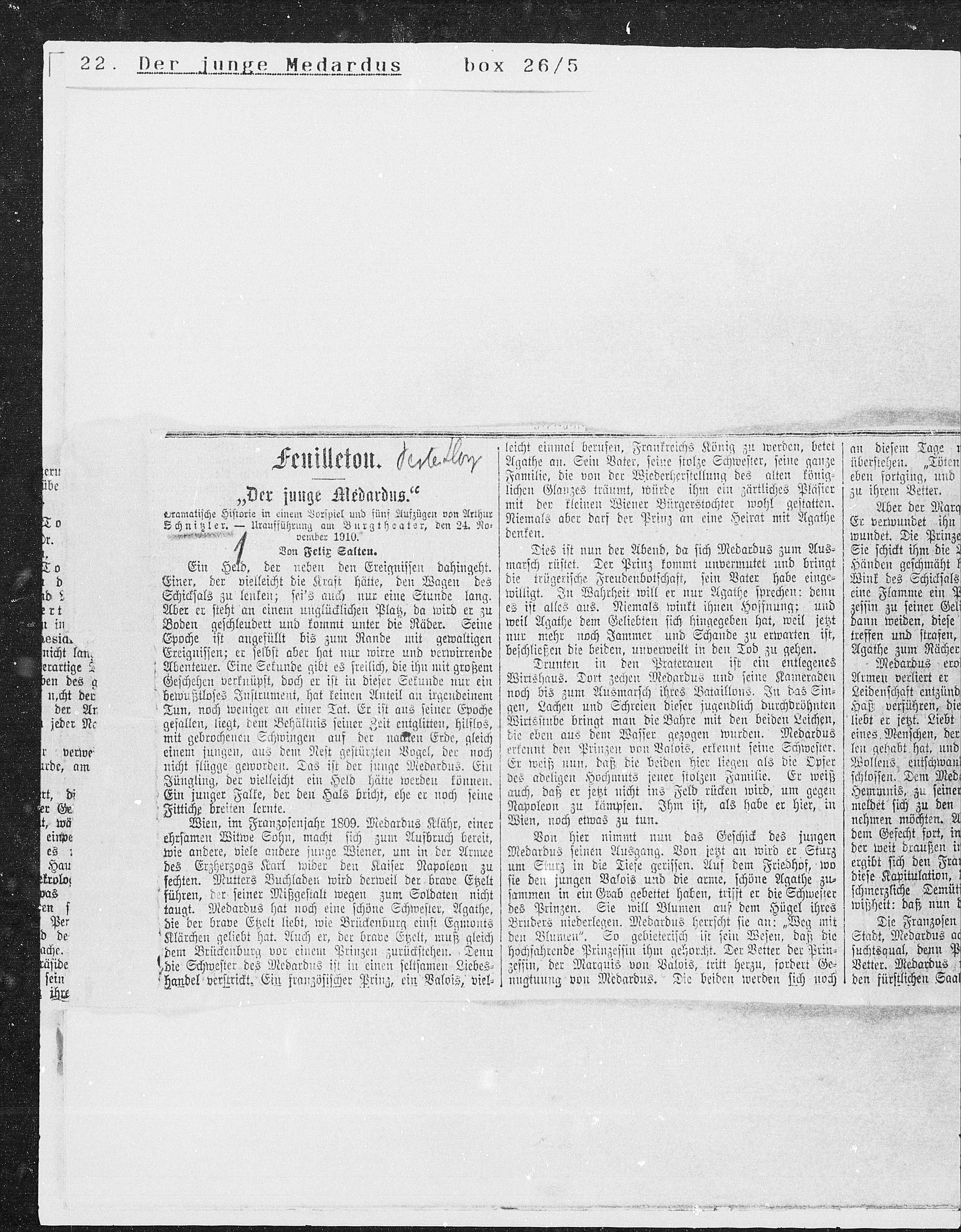 Schnißler. — Uraufführung am Burgtheater, den 24. No¬