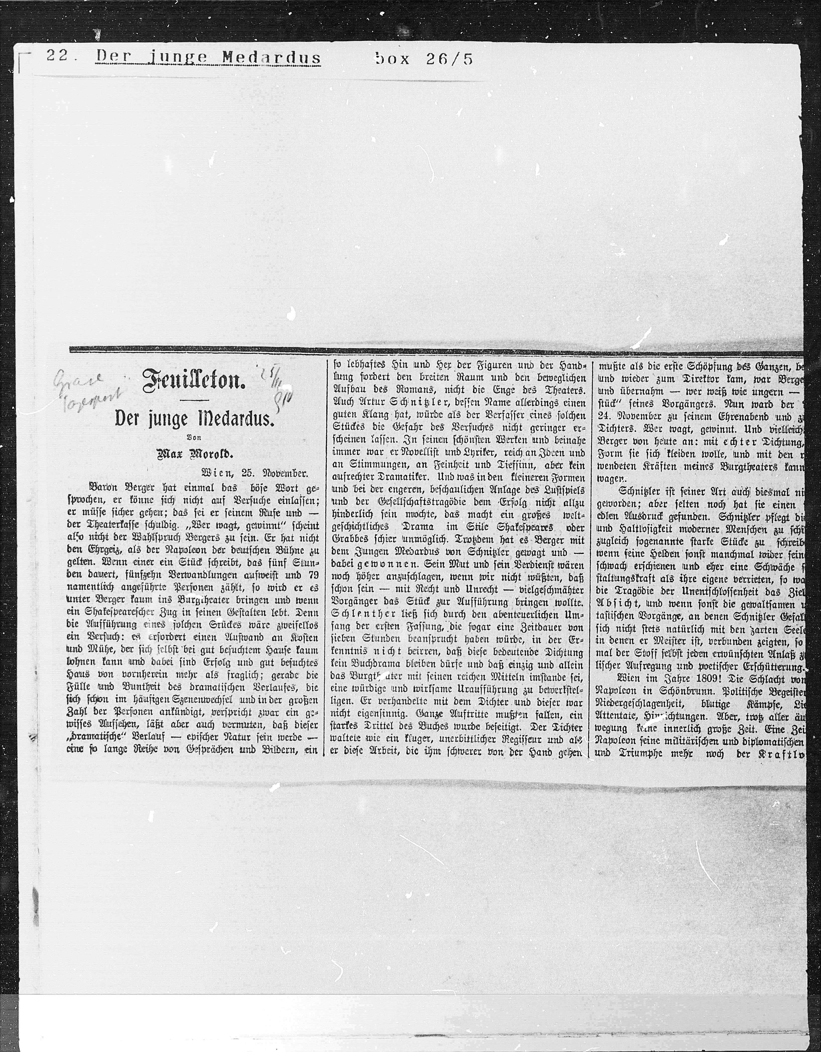 dem Jungen Medardus von Schnitzler gewagt und —