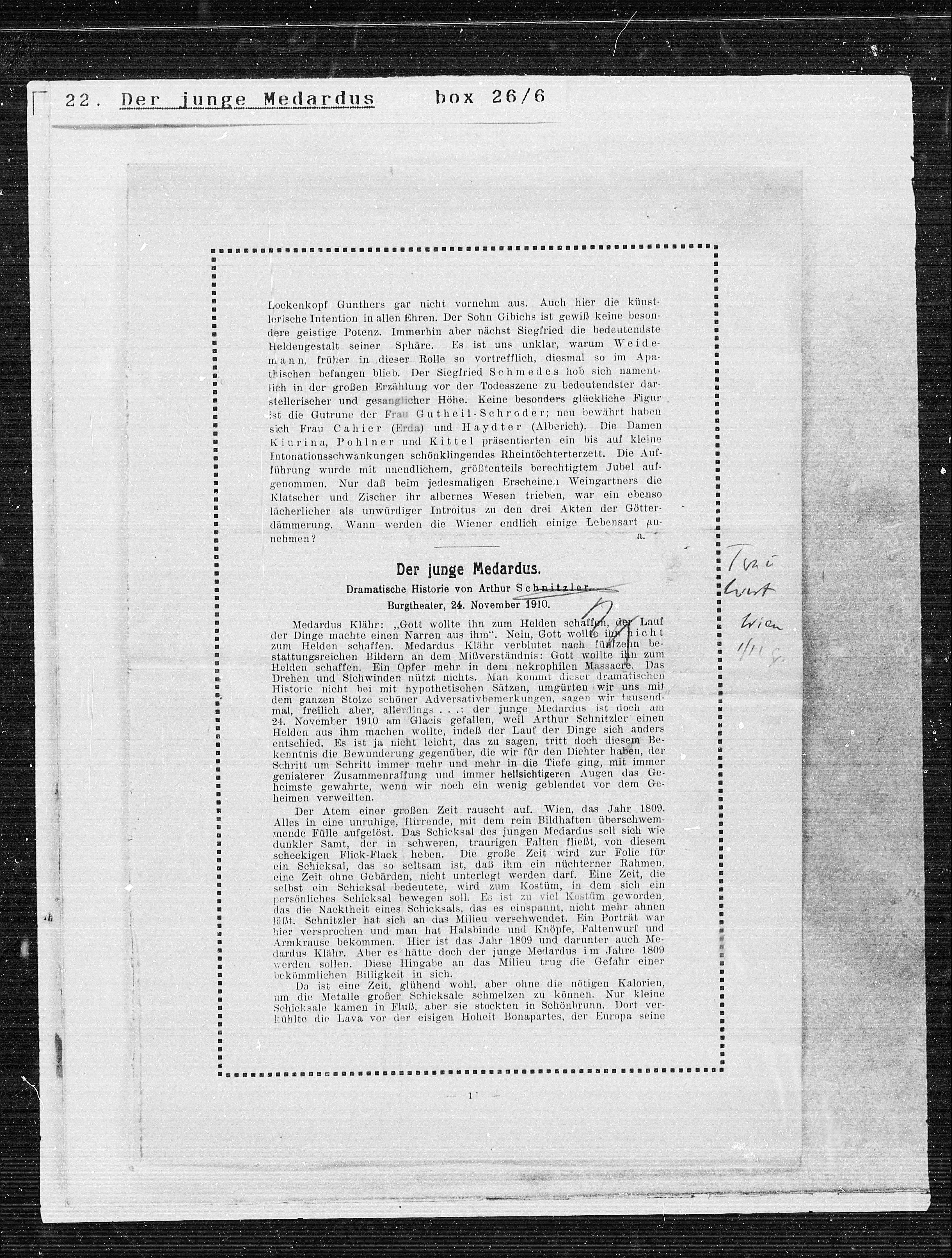 24. November 1910 am Glacis gefallen, weil Arthur Schnitzler einen