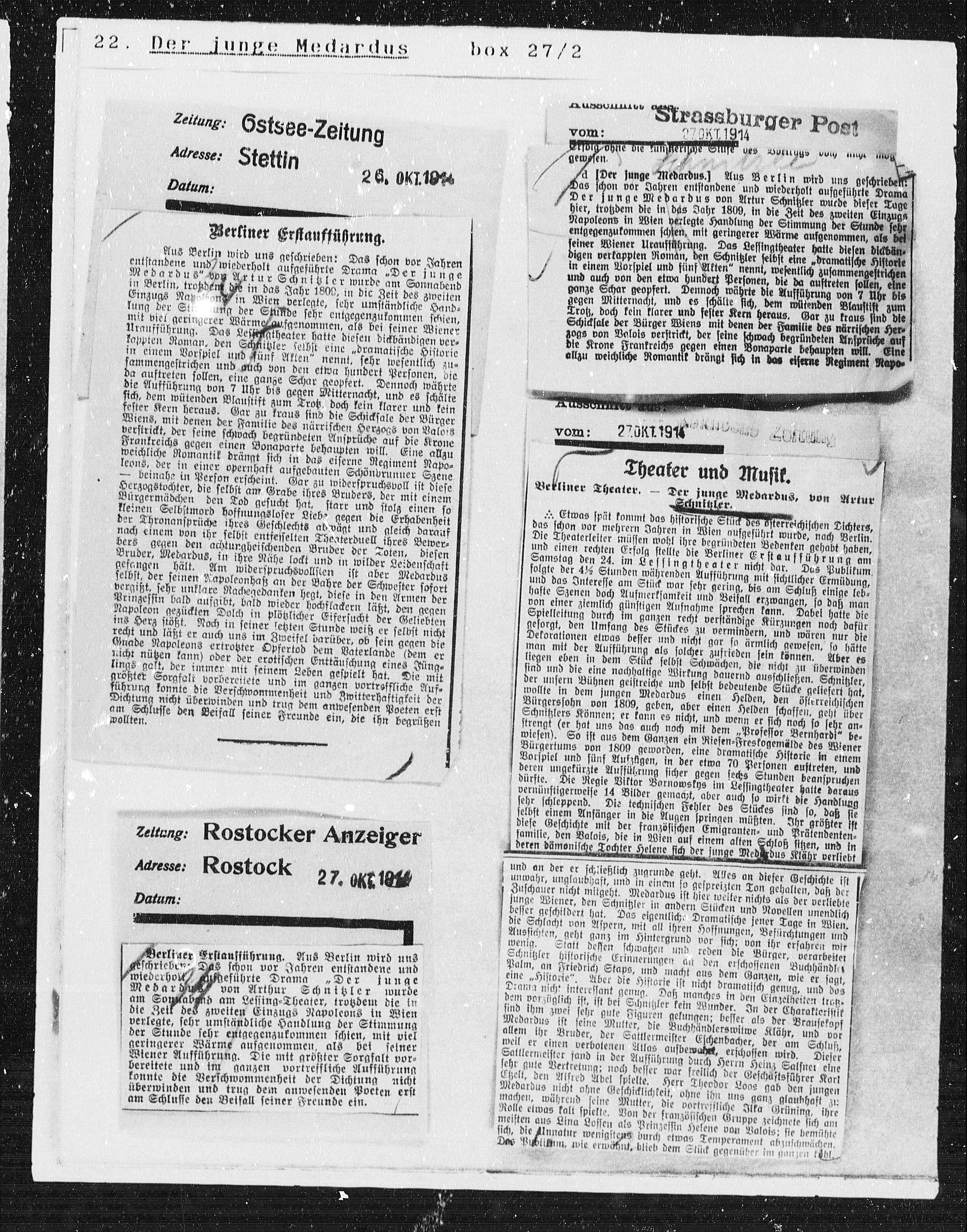 Der junge Medardus von Artur Schnitzler wurde dieser Tage