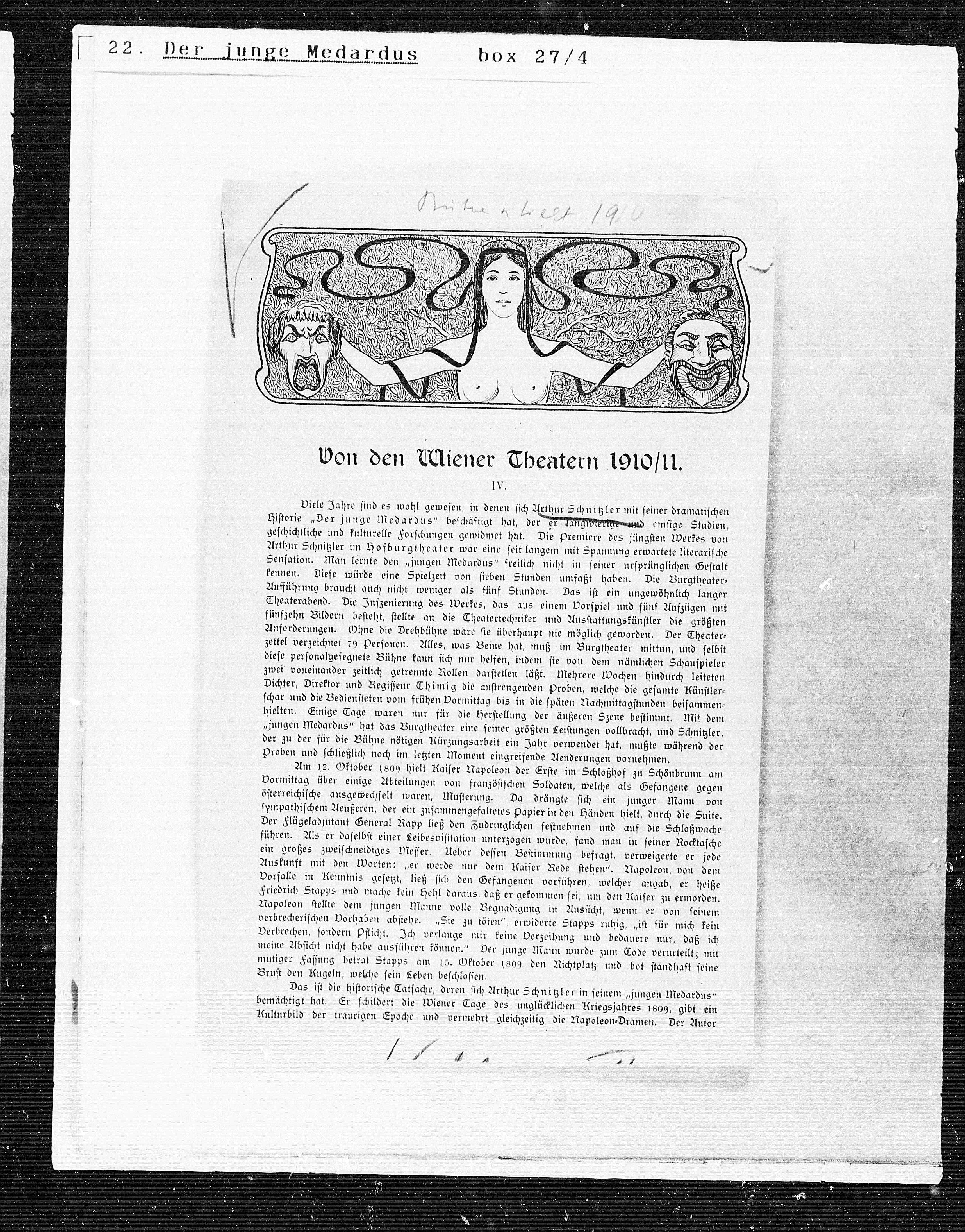 Von den Wiener Theatern 1910/11.