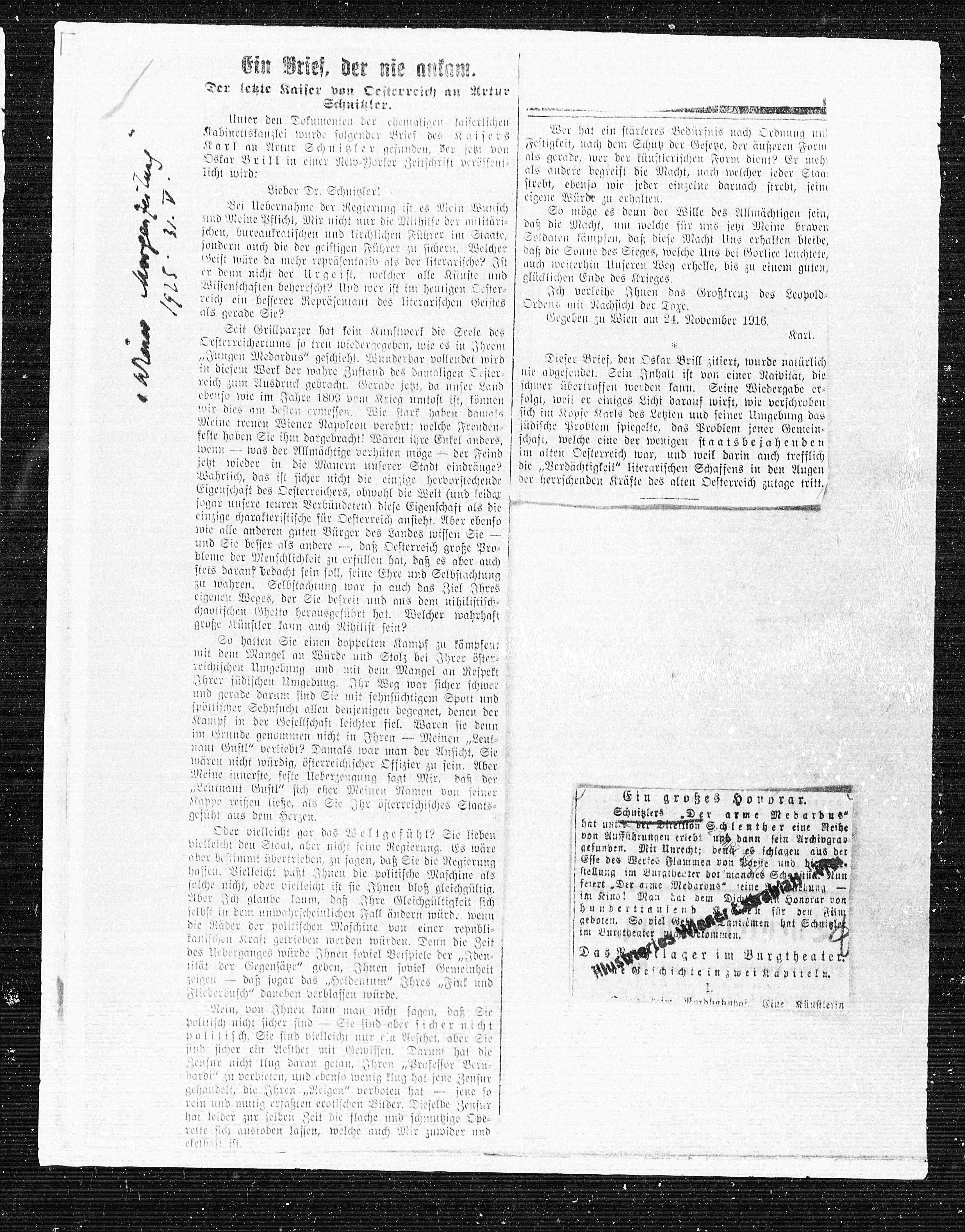 Karl an Artur Schnitzler gefunden, der jetzt von