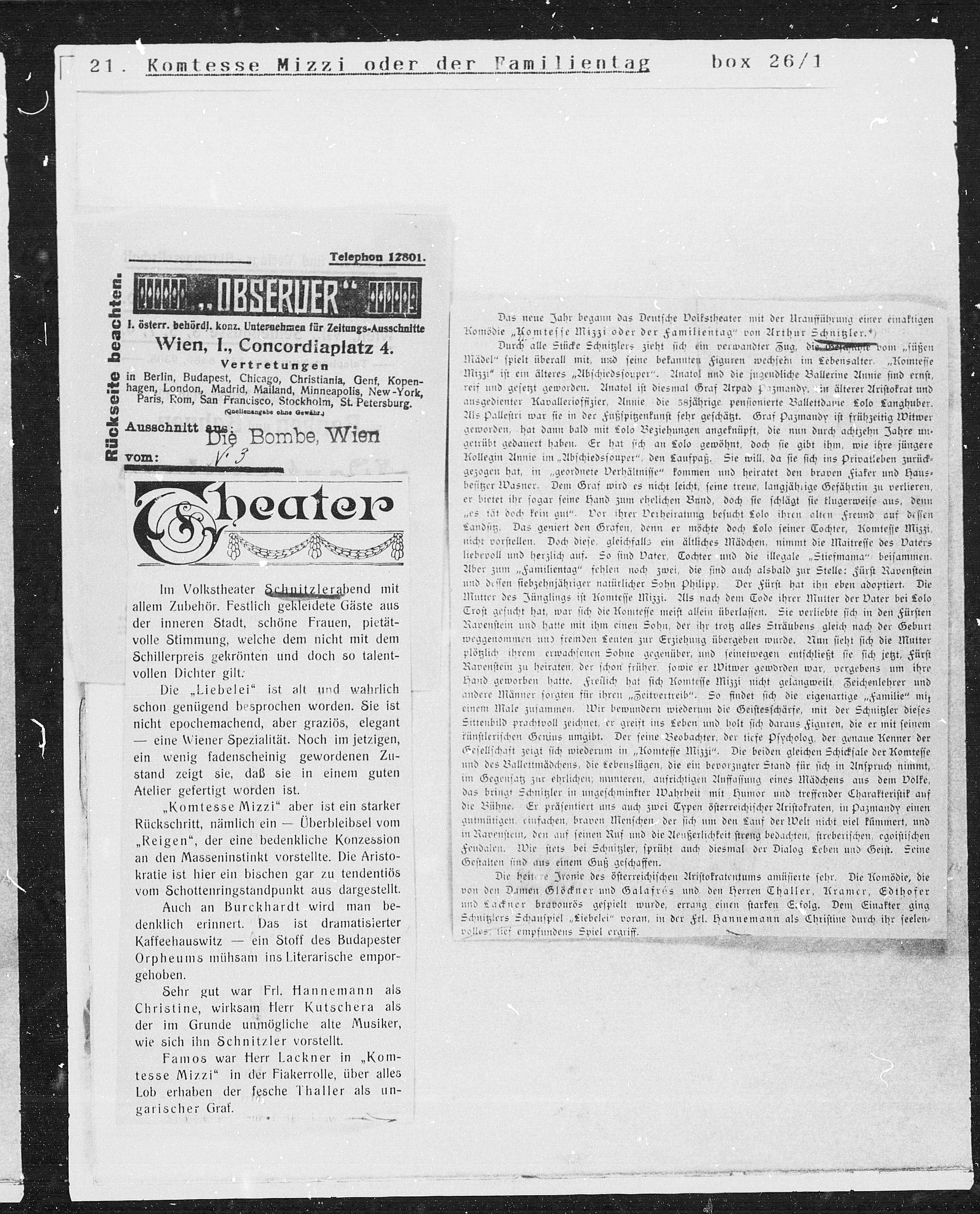 O l. österr. behördl. konz. Unternehmen für Zeitungs-Ausschnitte
