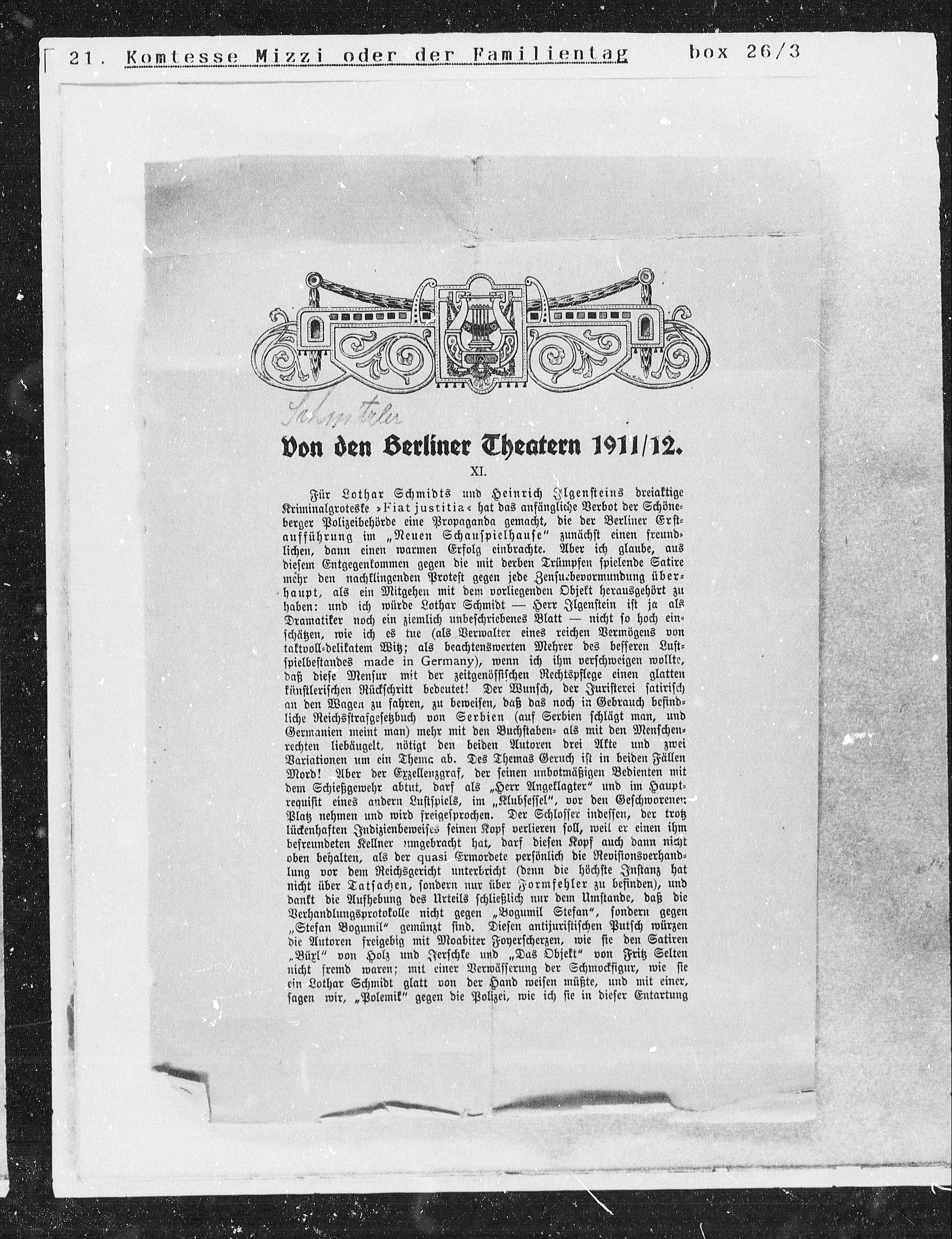Von den Berliner Theatern 1911/12.