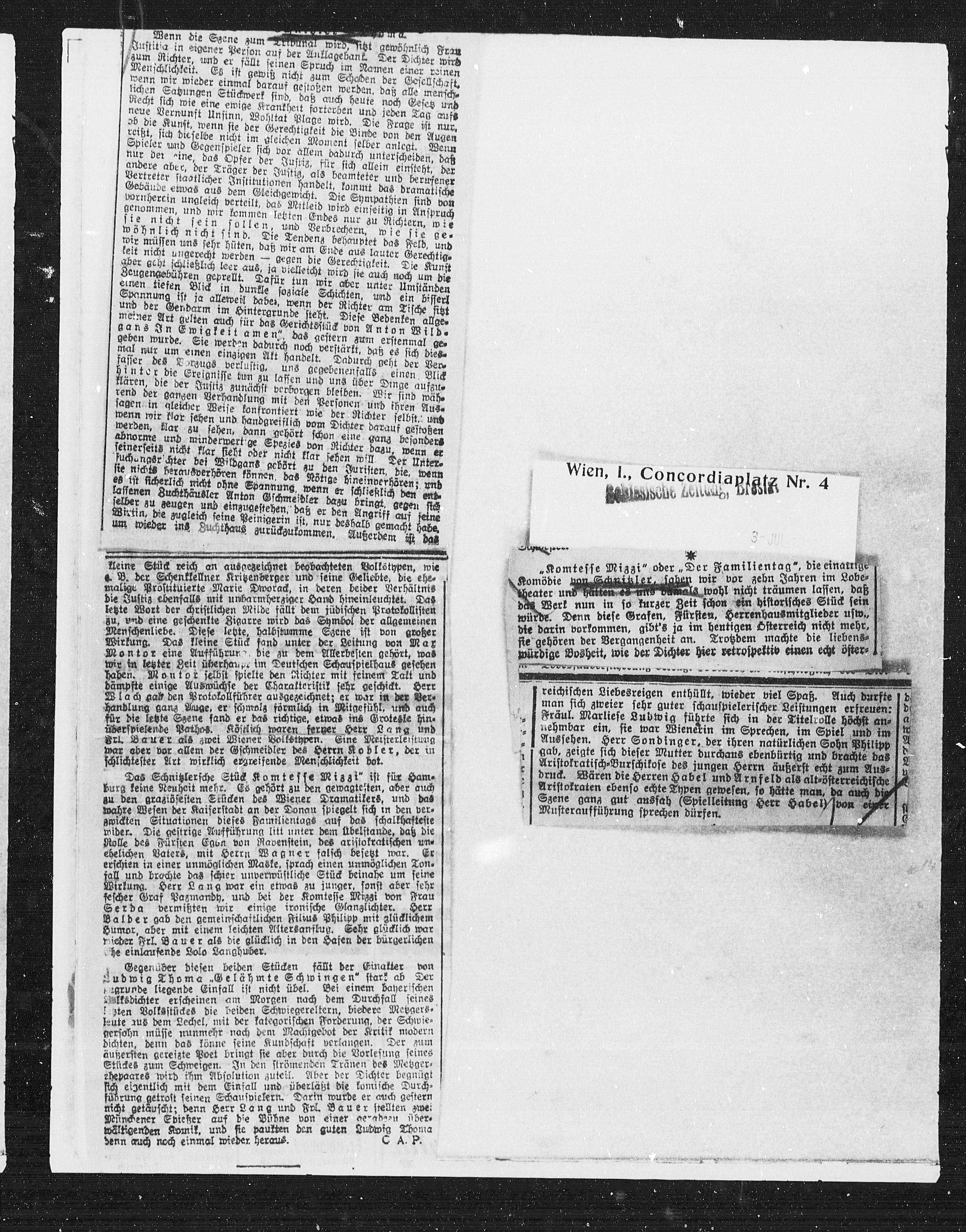 Das Schnitzlersche Stück Komtesse Mizzi“ ist für Ham¬