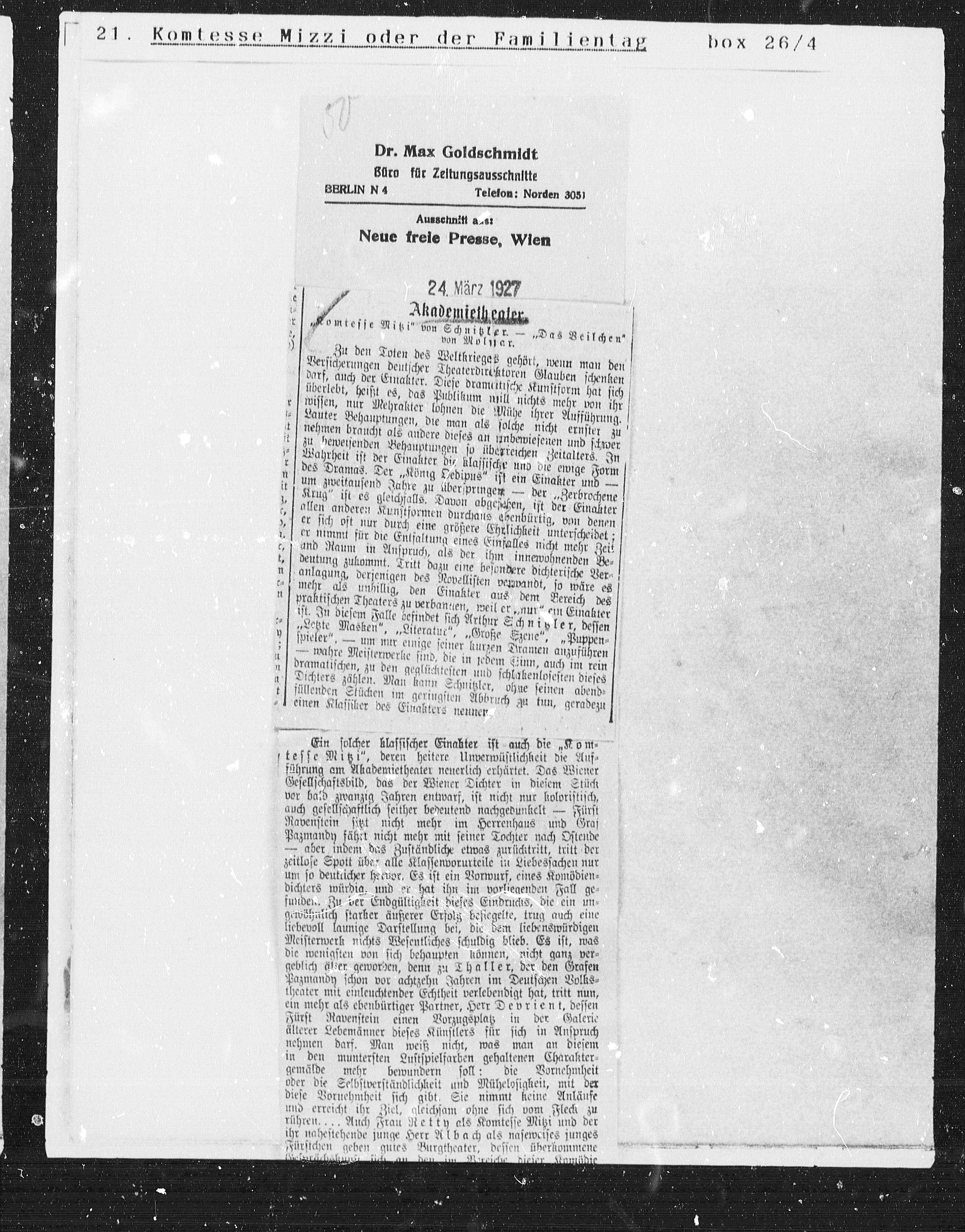 „Komtesse Mitzi“ von Schnitzker. — „Das Beischen“
