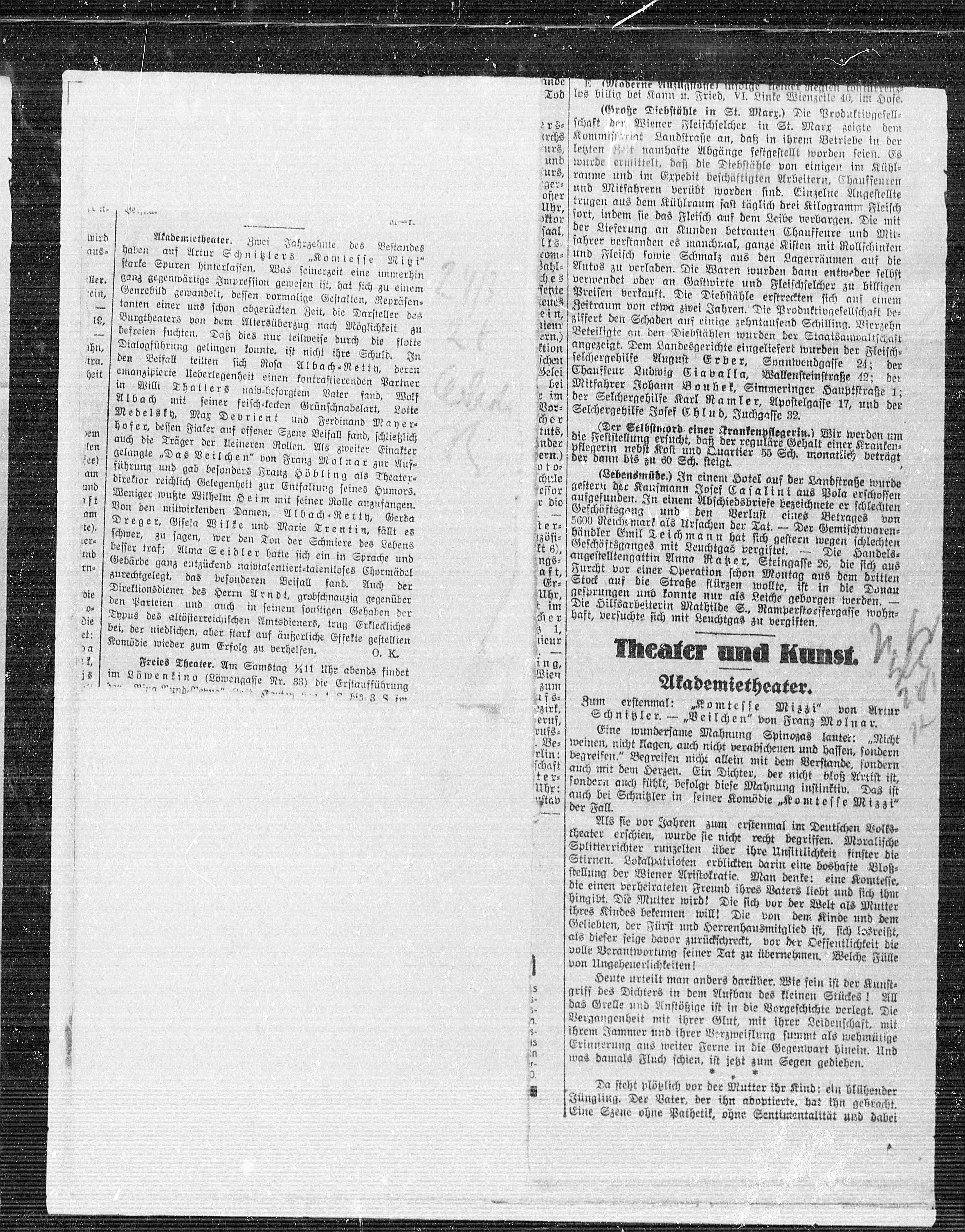 Schnitzler. — „Veilchen“ von Franz Molnar.