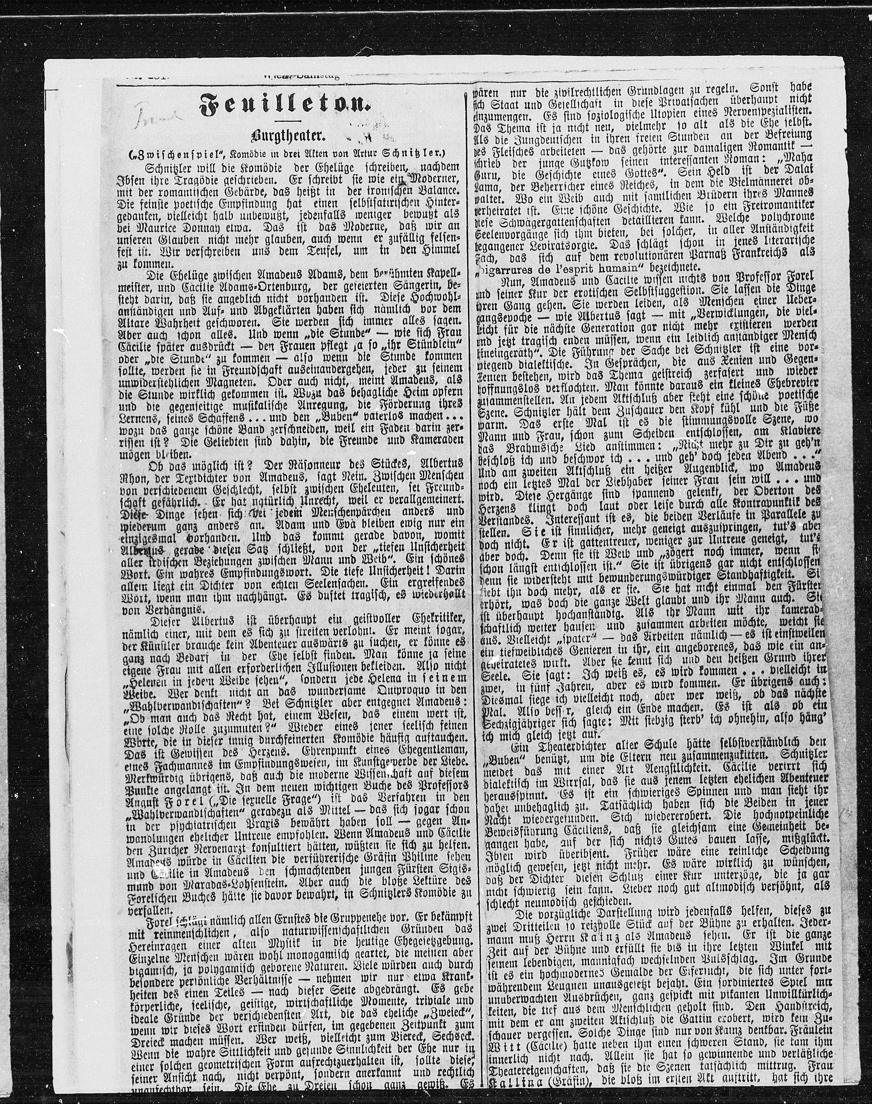 („Zwischenspiel“, Komödie in drei Akten von Artur Schnitzler.)