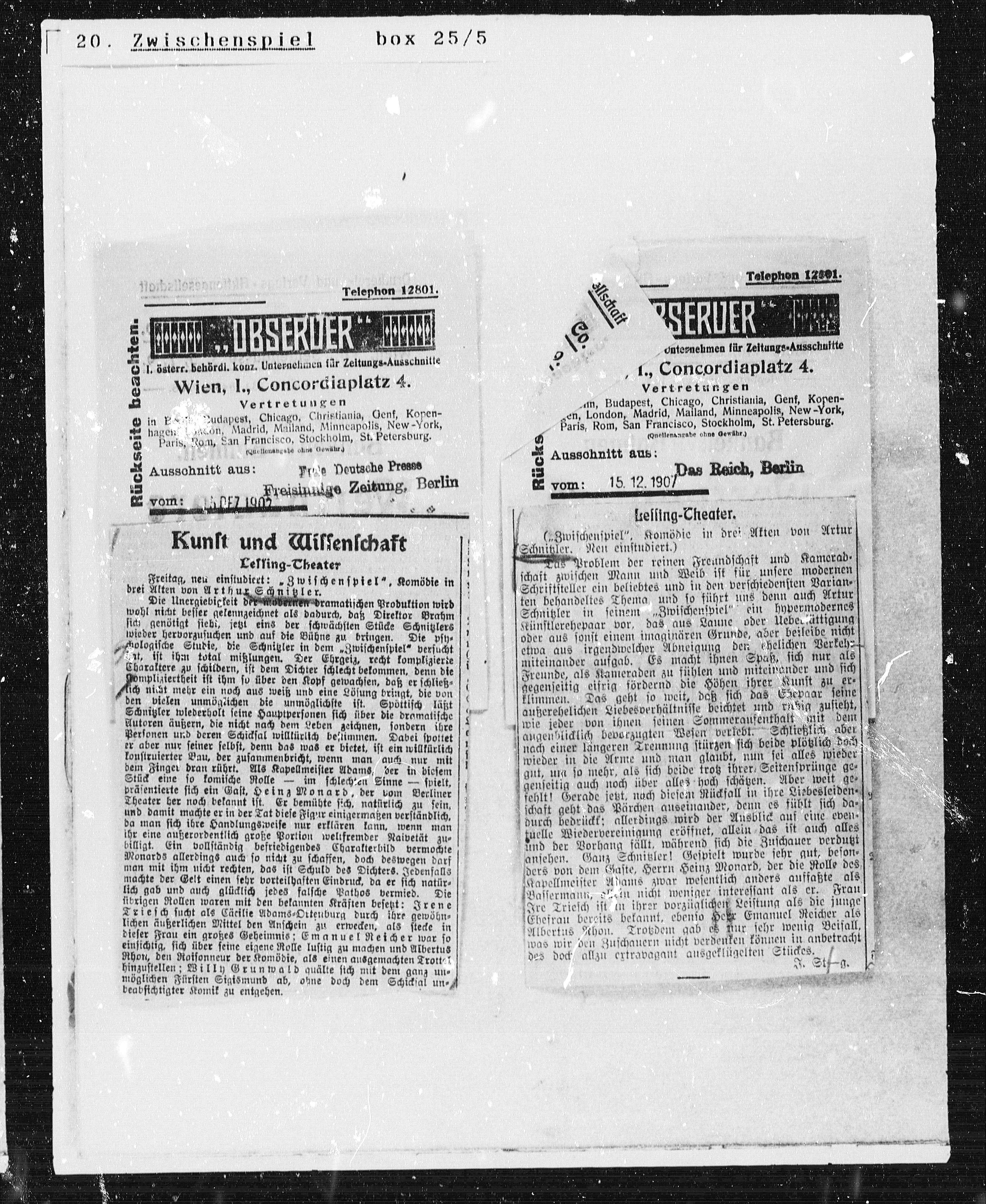 O l. österr. behördl. konz. Unternehmen für Zeitungs-Ausschnitte
