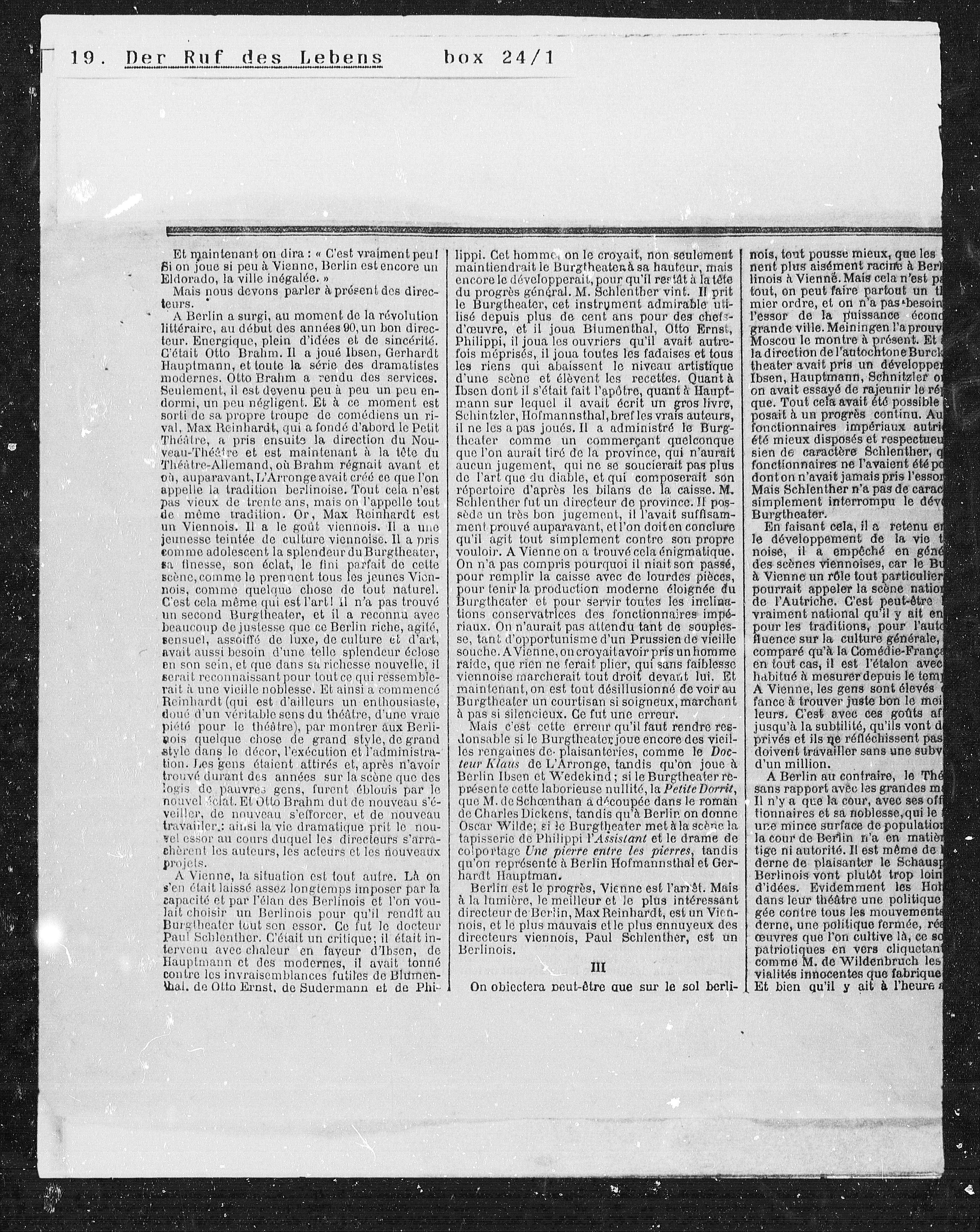 directeurs viennois, Paul Schlenther, est un