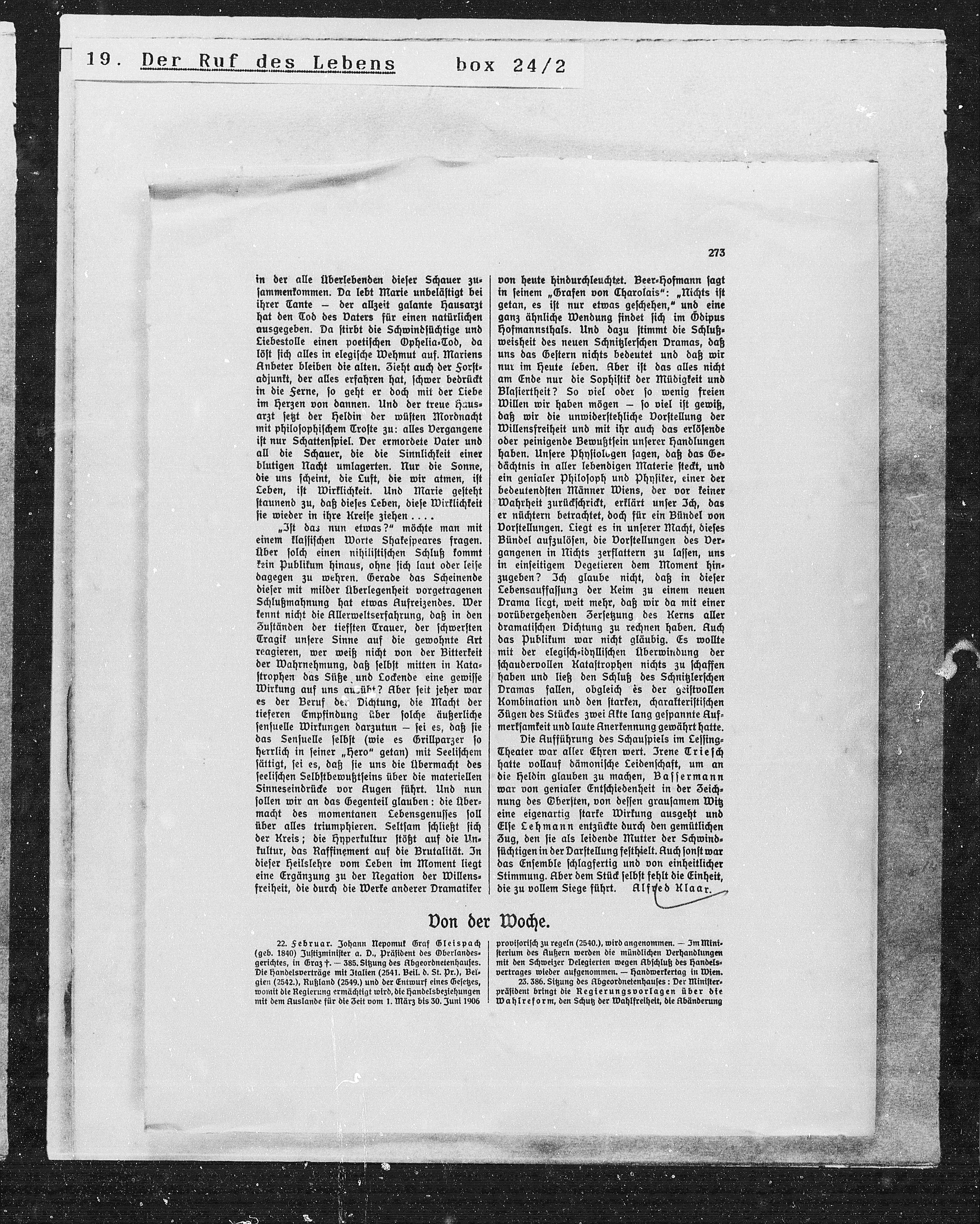 weisheit des neuen Schnitzlerschen Dramas, daß