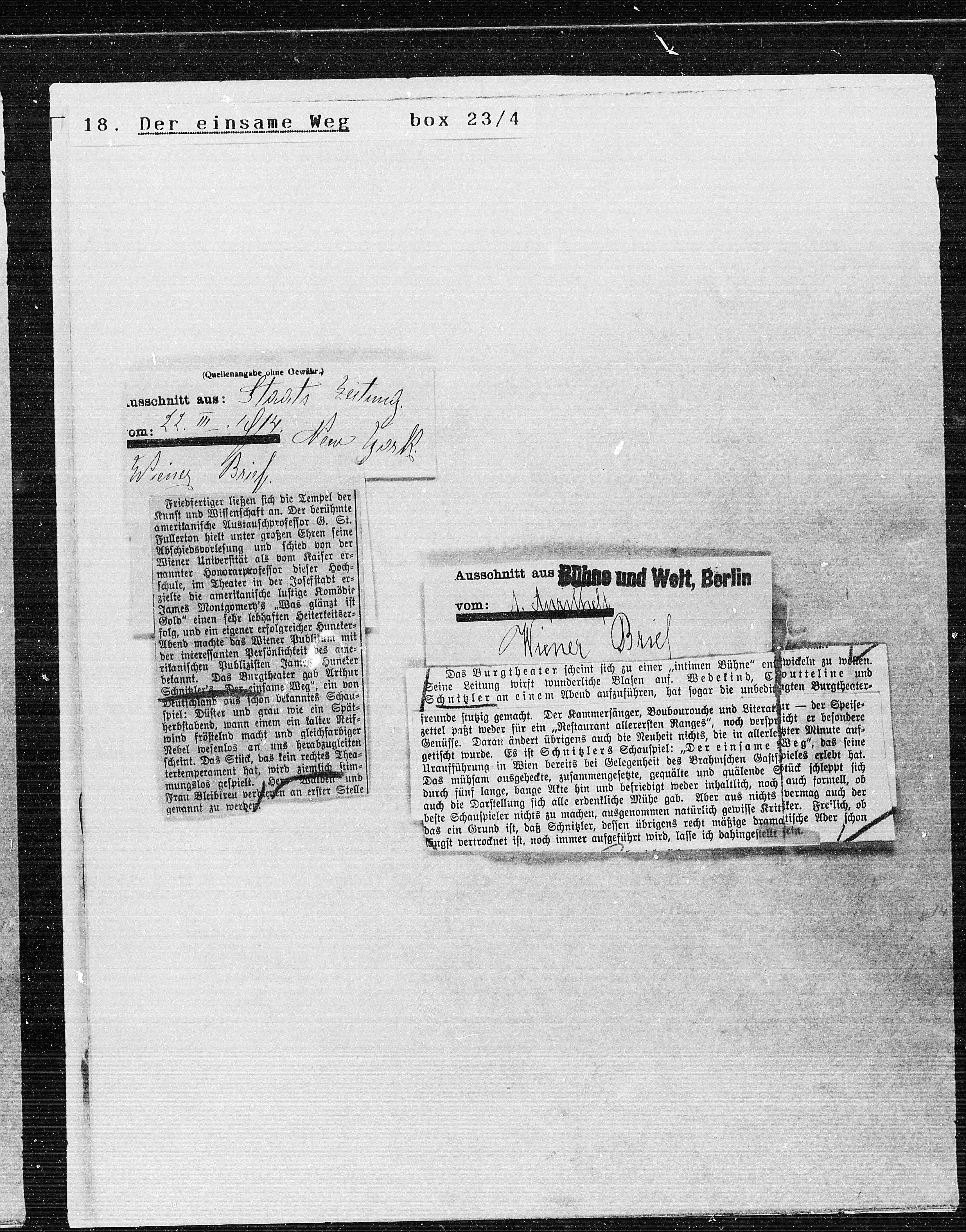 getischt wurde. Es ist Schnitzlers Schauspiel: „Der einsame Weg“, das seine