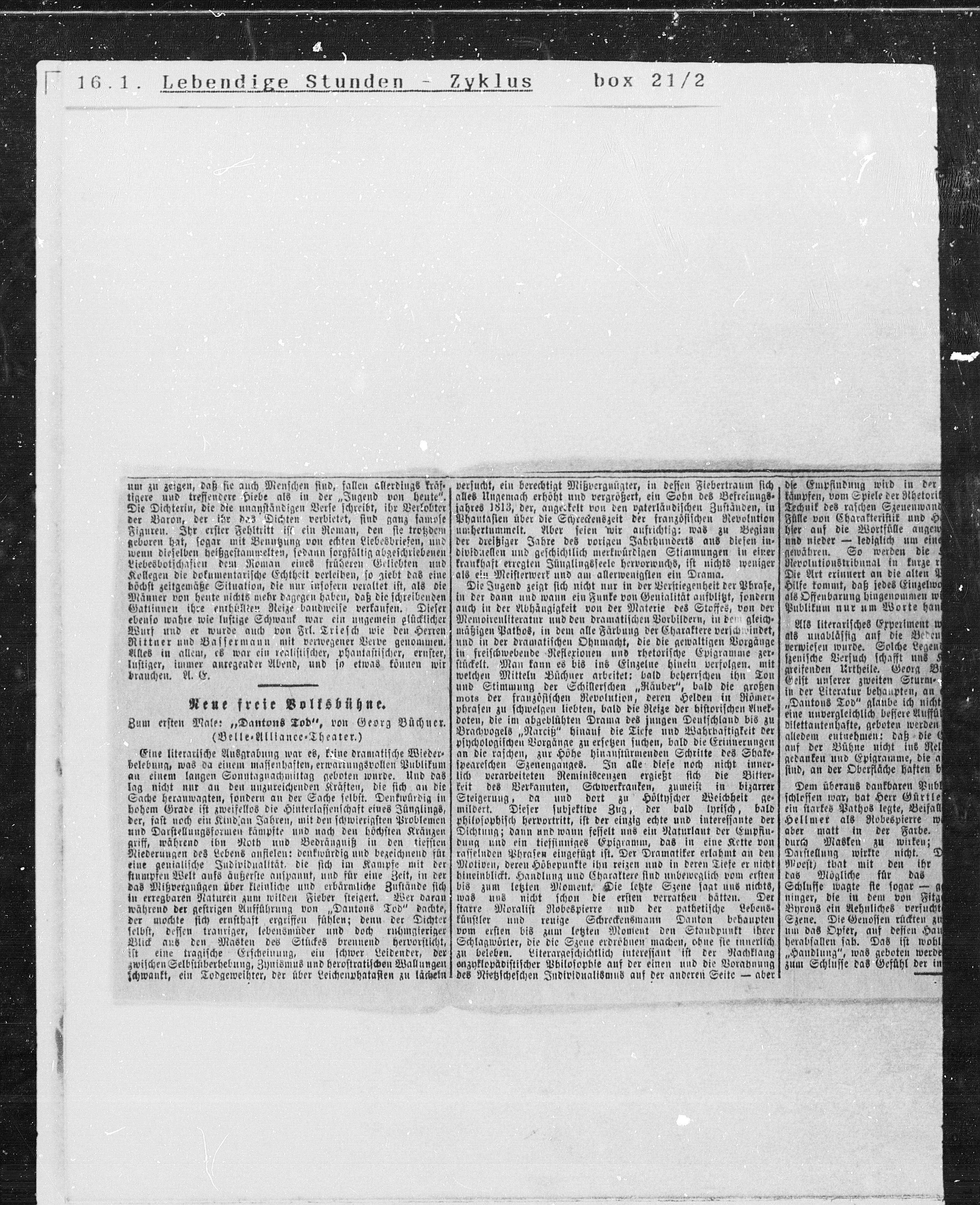 Zum ersten Male: „Dantons Tod“, von Georg Büchner.