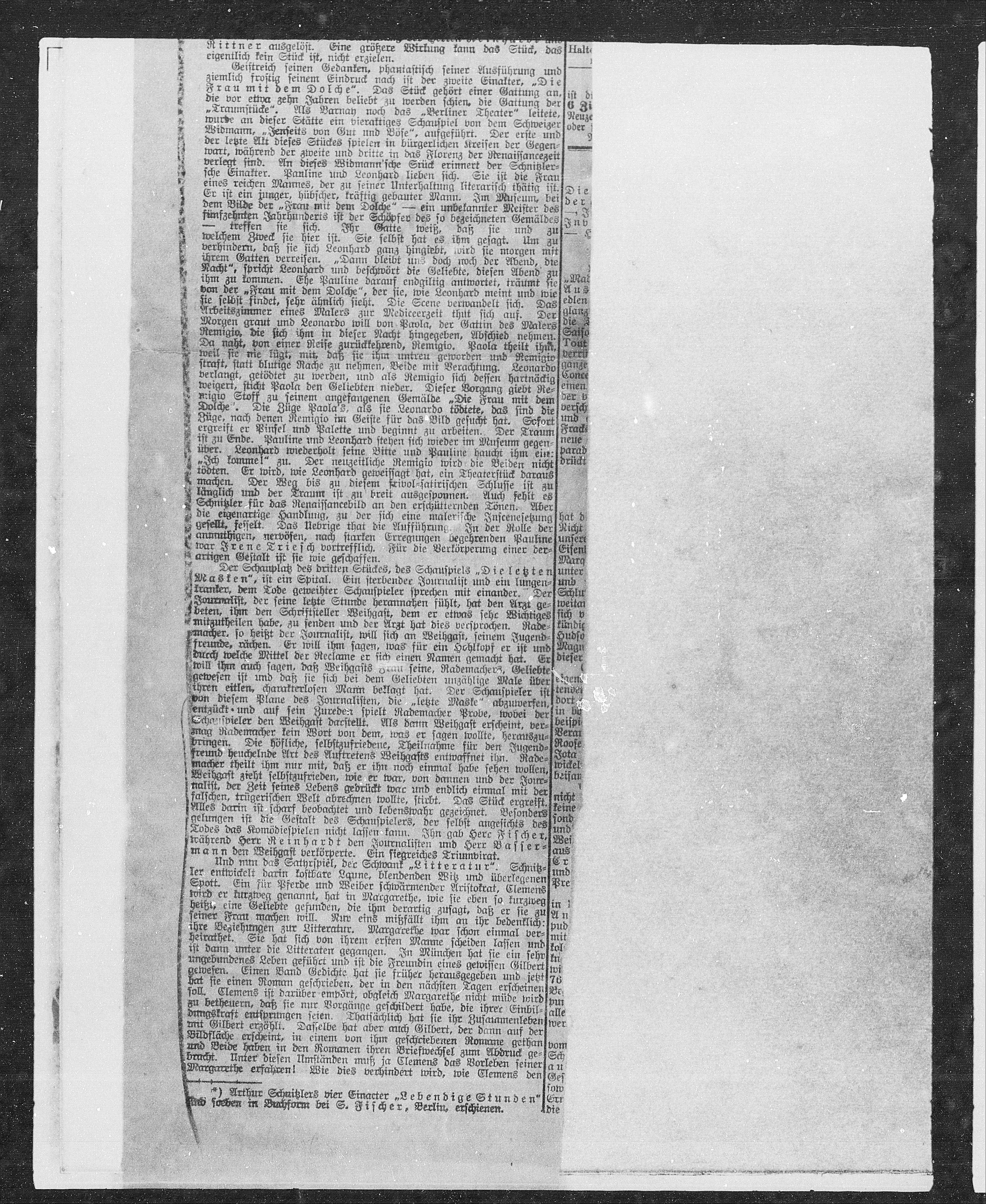 *) Arthur Schnitzlers vier Einacter „Lebendige Stunden" Err