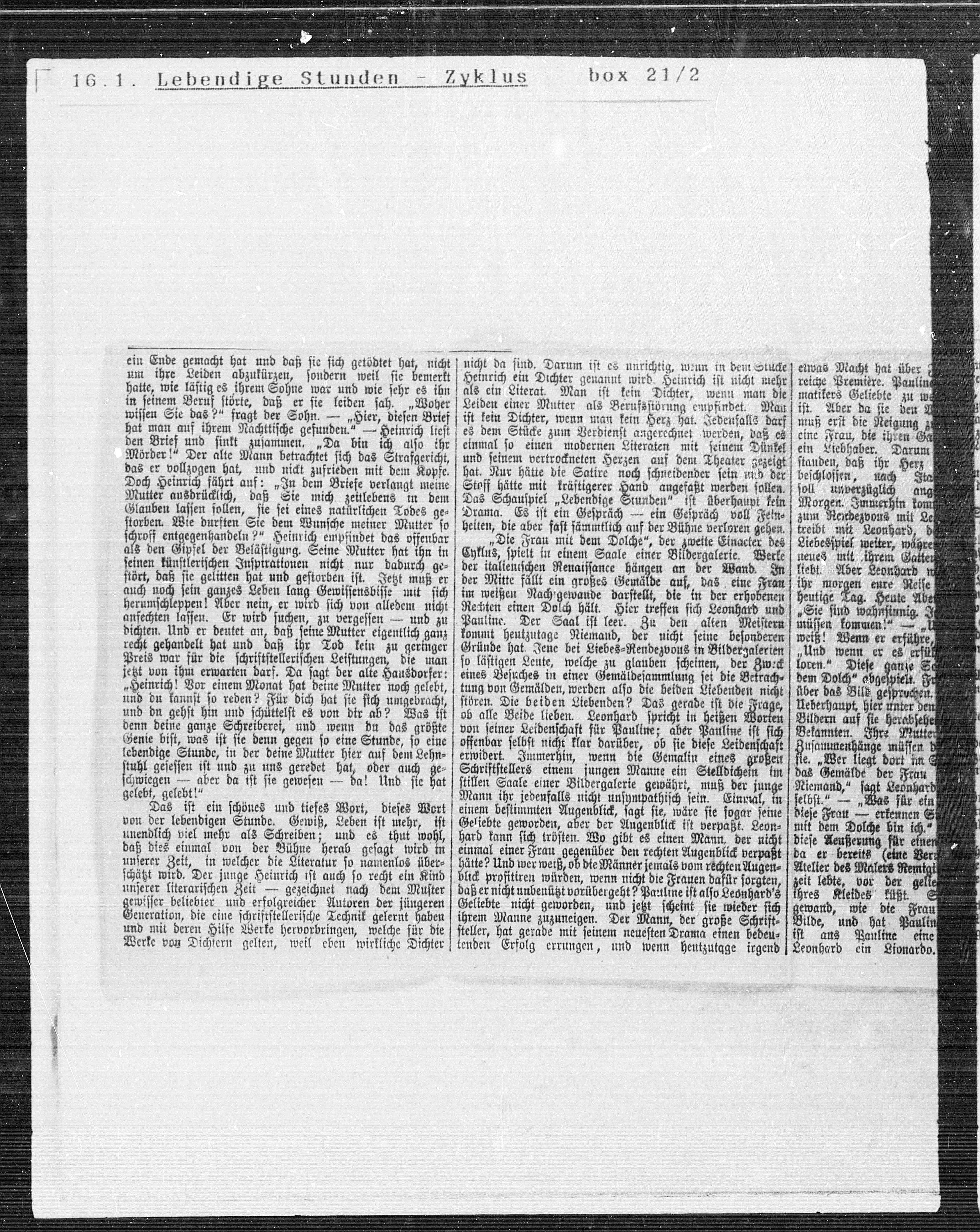 Das Schauspiel „Lebendige Stunden“ ist überhaupt kein] Morgen. Immerhin kom