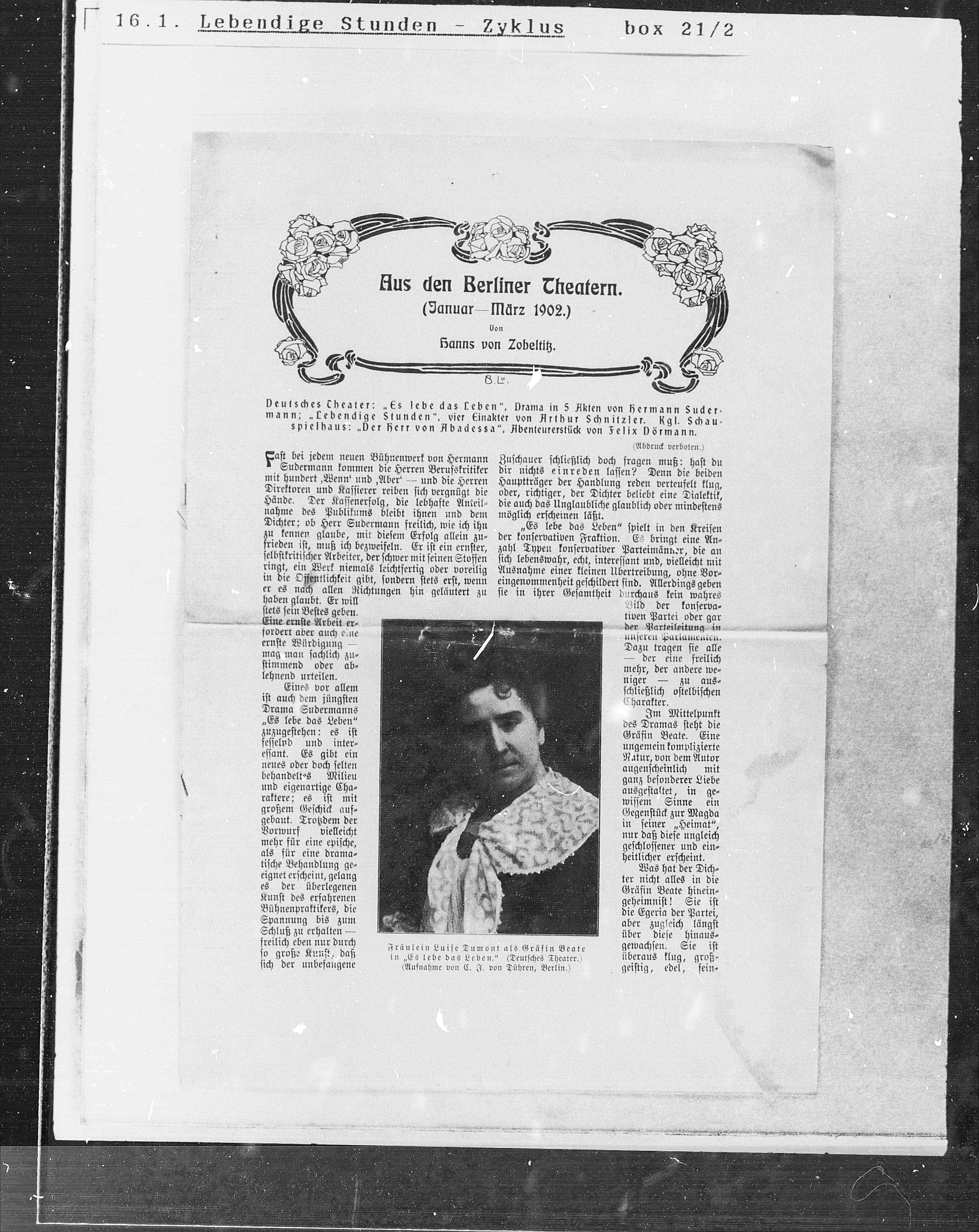 1 „Es lebe das Leben.“ (Deutsches Theater.)