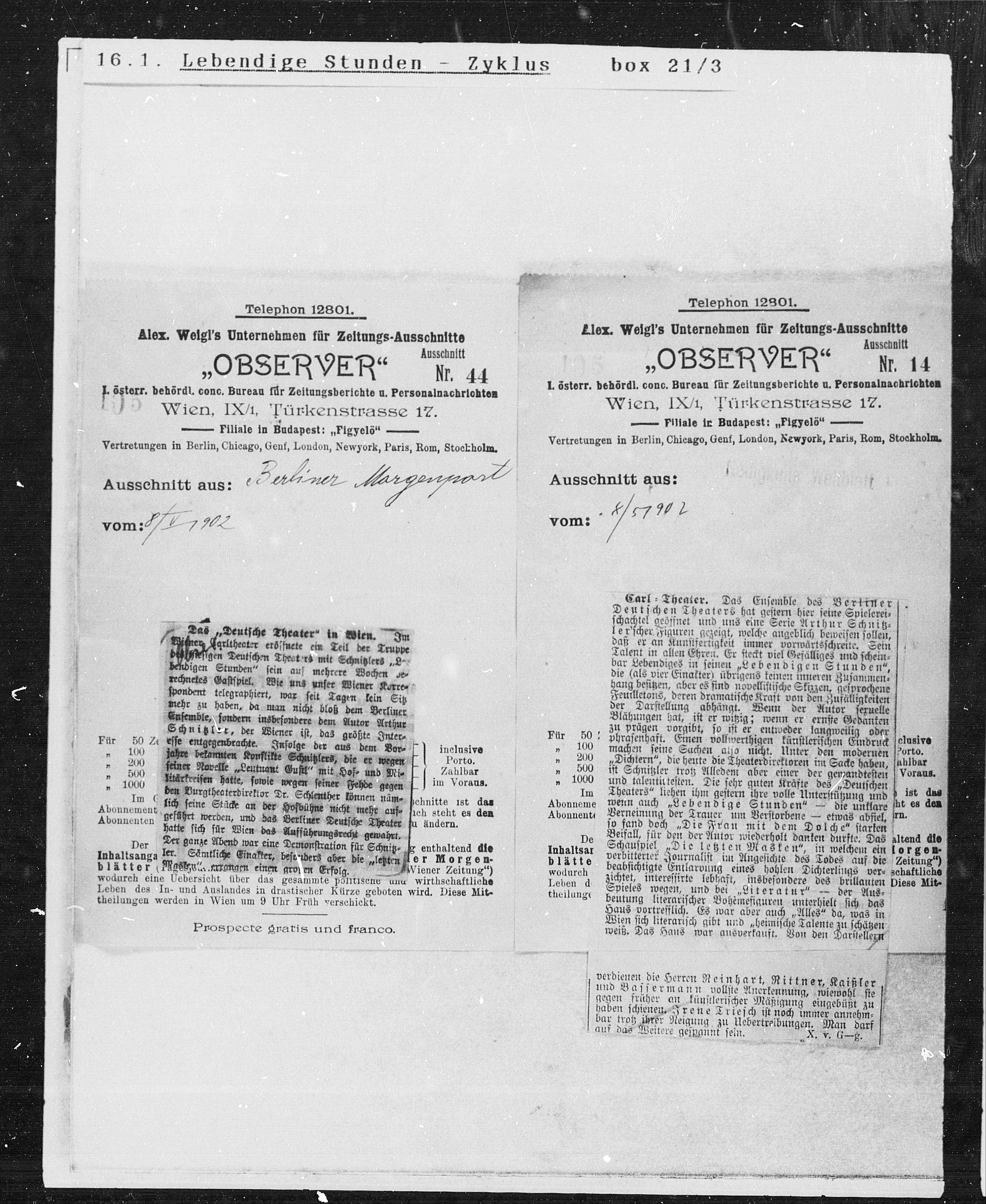 Alex. Weigl's Unternehmen für Zeitungs-Ausschnitte