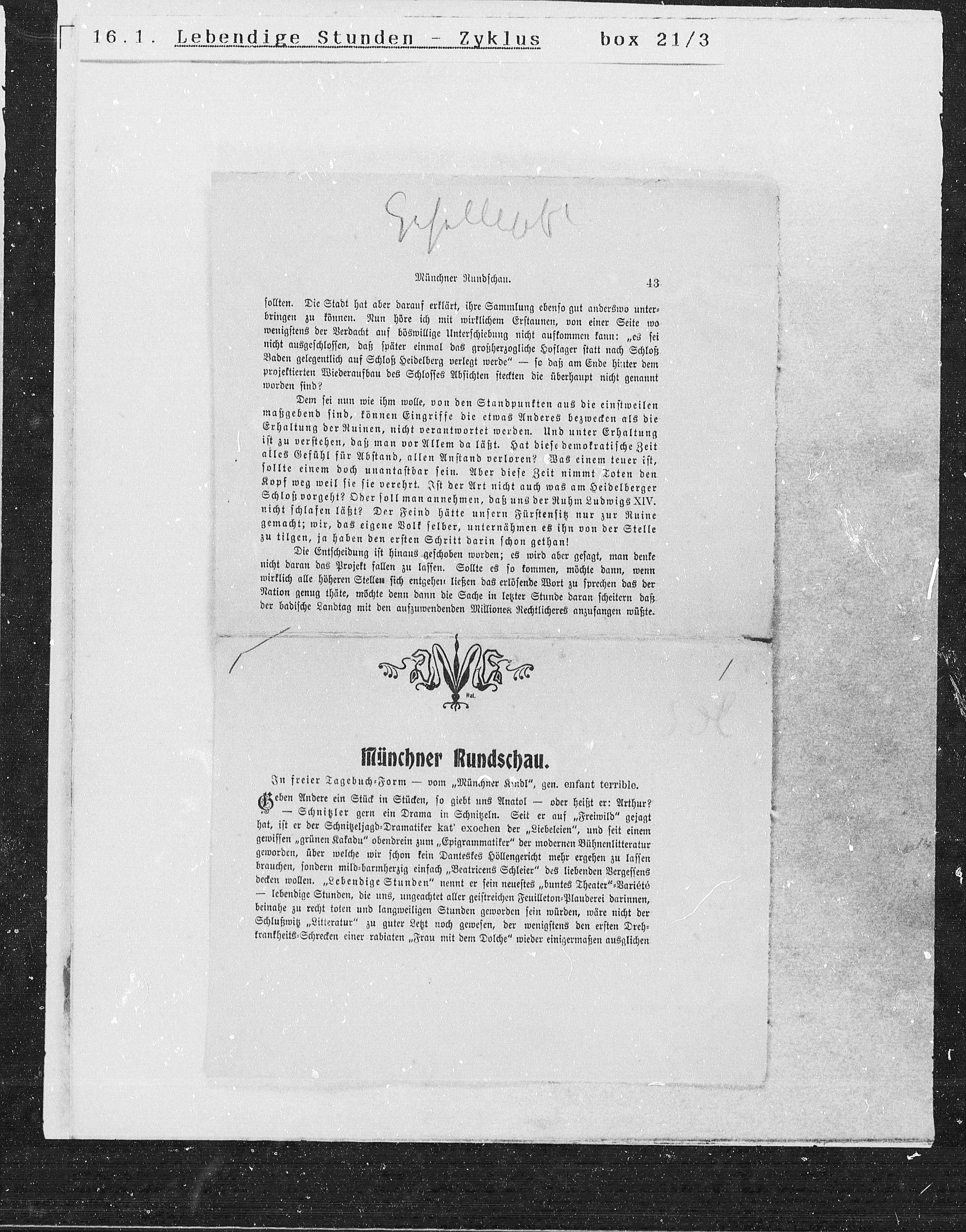 In freier Tagebuch=Form — vom „Münchner Kindl“, gen. enfant terrible.