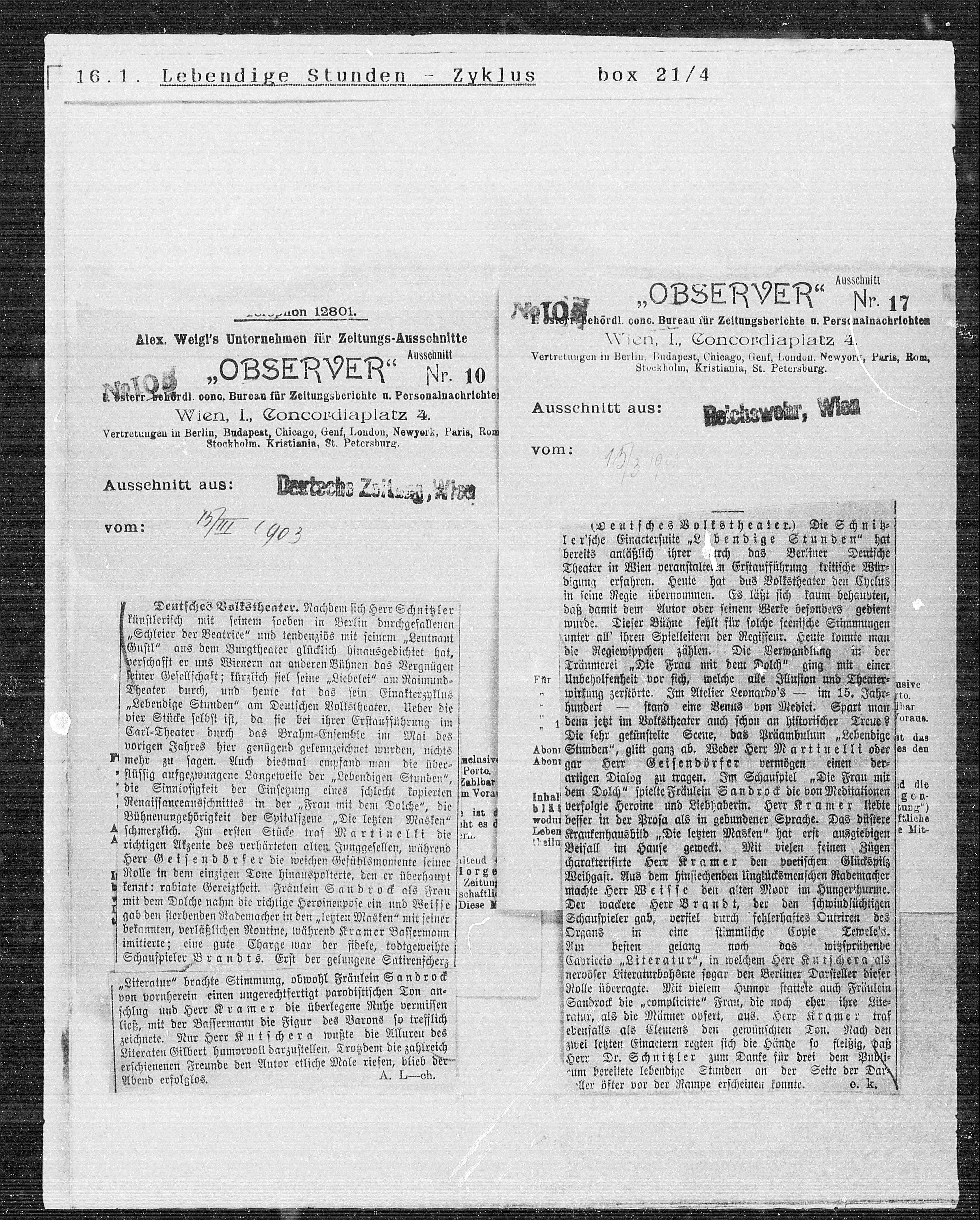 Alex. Weigl’s Unternehmen für Zeitungs-Ausschnitte