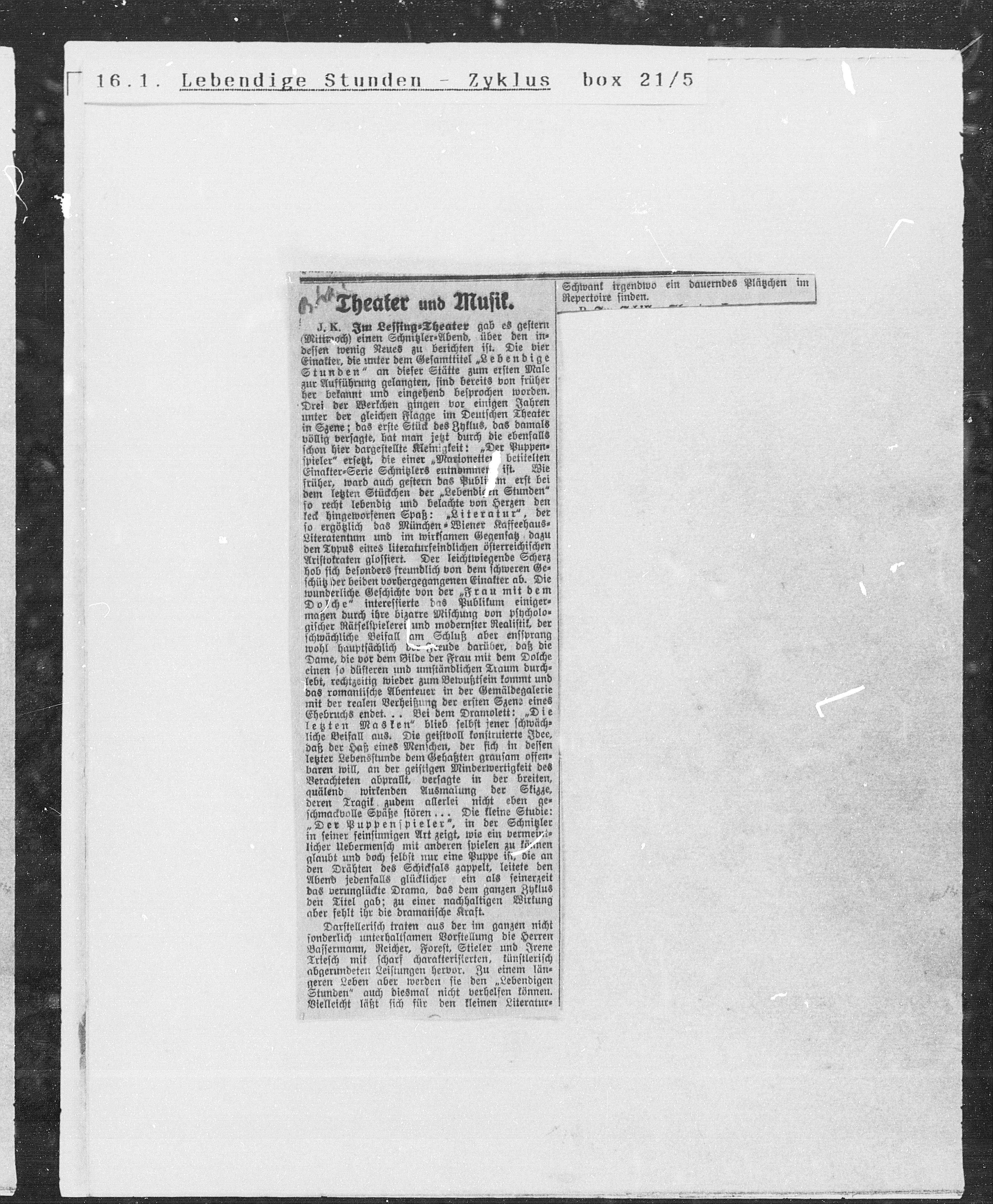 „Der Puppenspieler“, in der Schnitzler