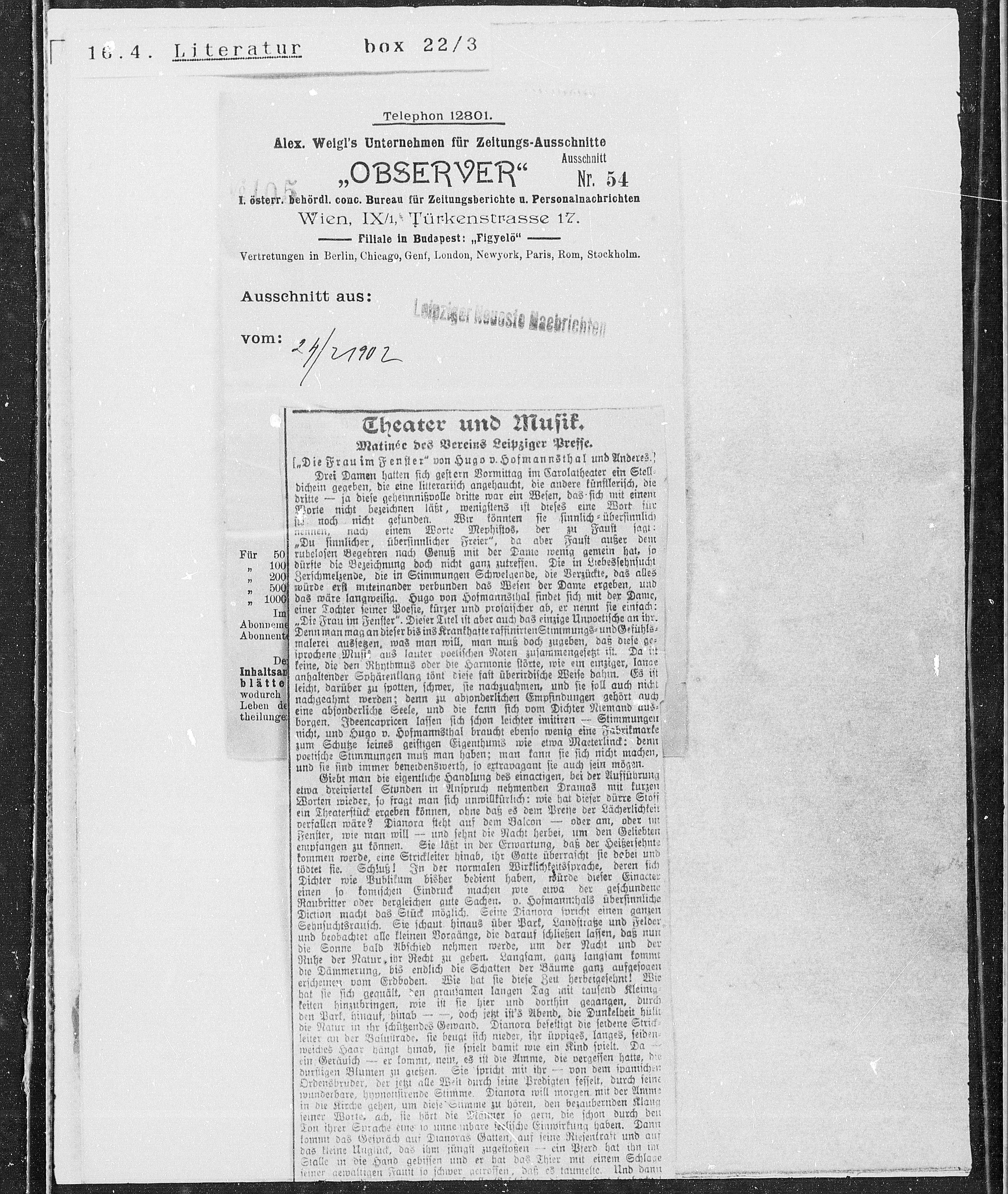 Alex. Weigl’s Unternehmen für Zeitungs-Ausschnitte