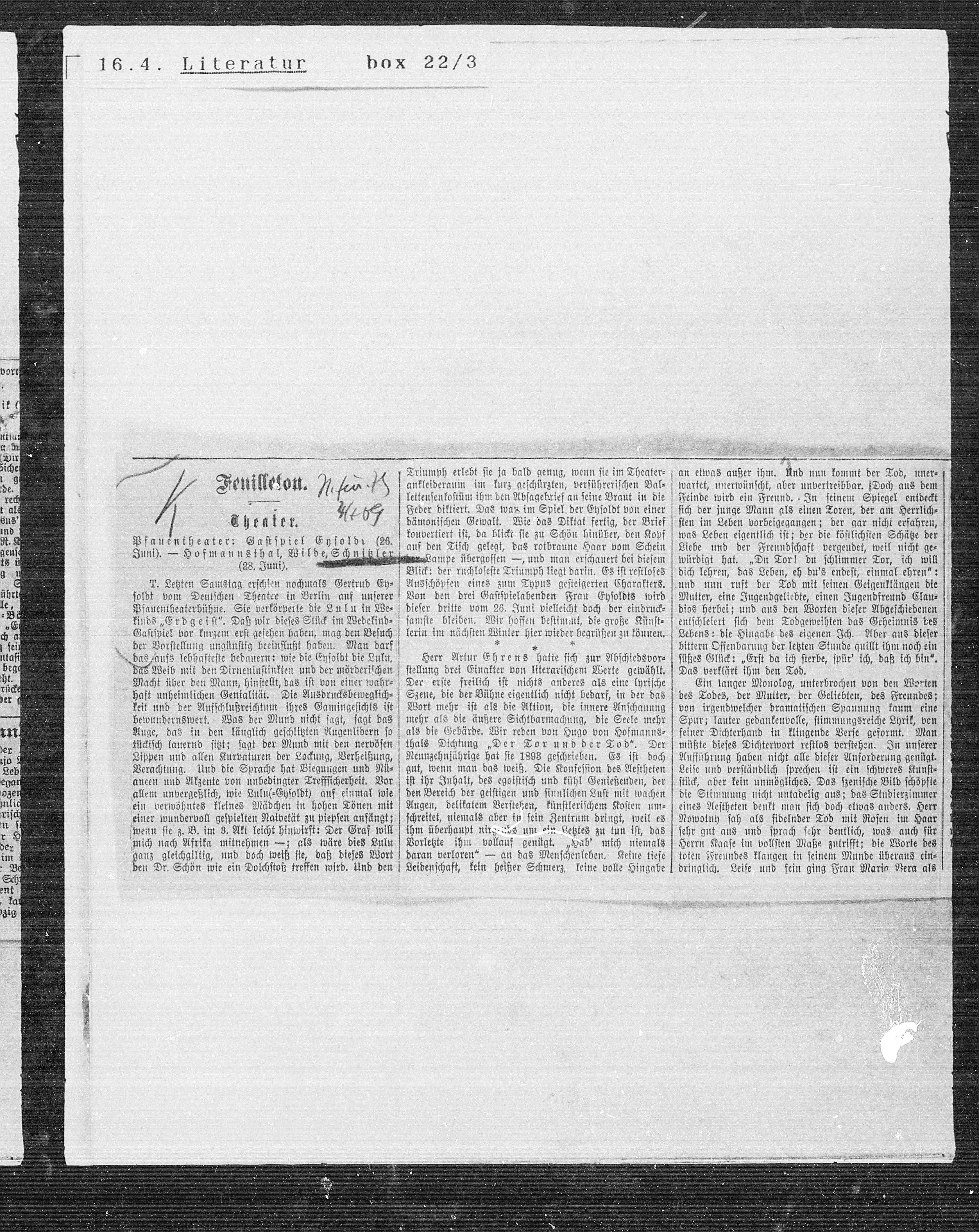 Juni). — Hofmannsthal, Wilde, Schun