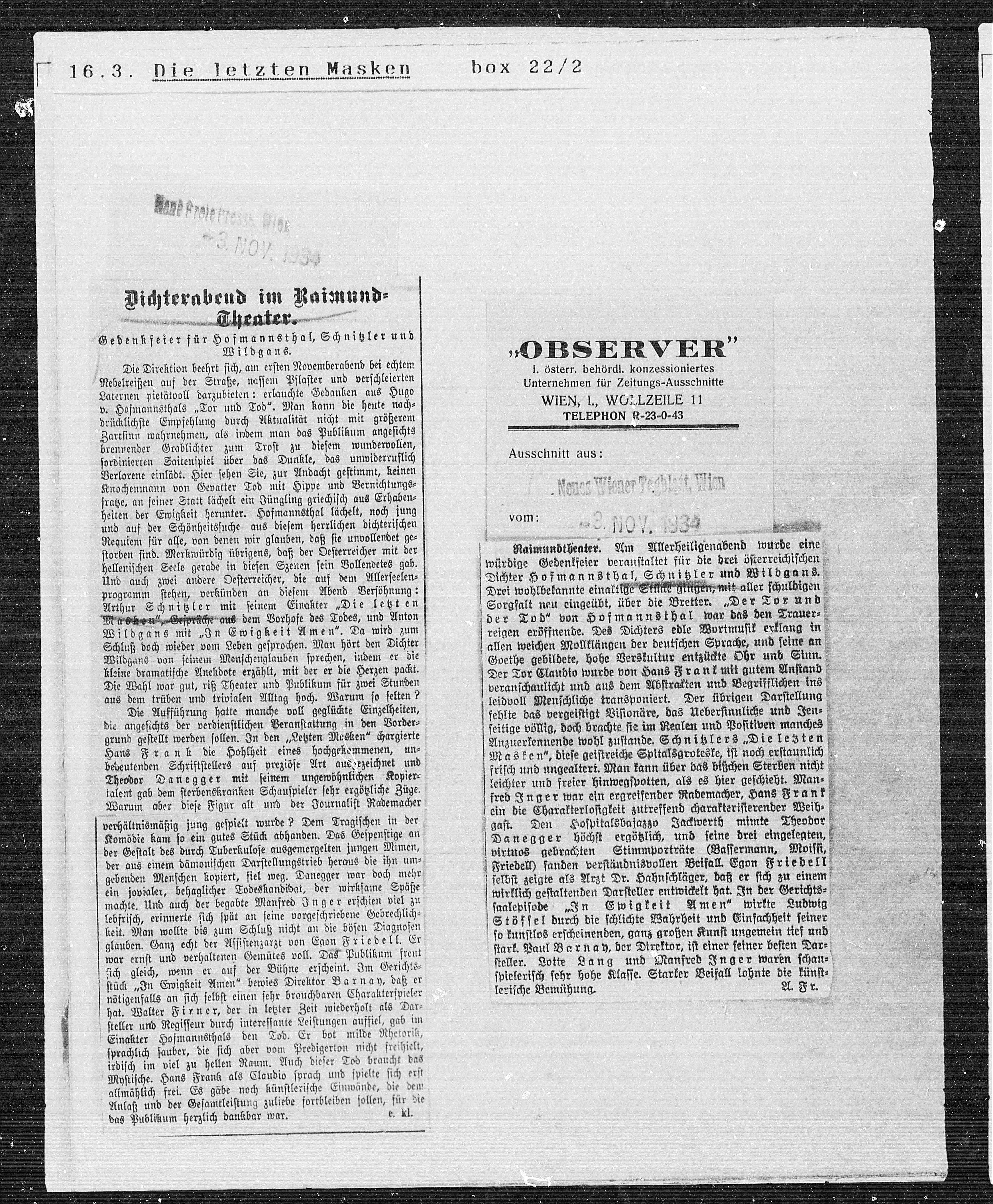 Gedenkfeier für Hofmannsthal, Schnitzler und