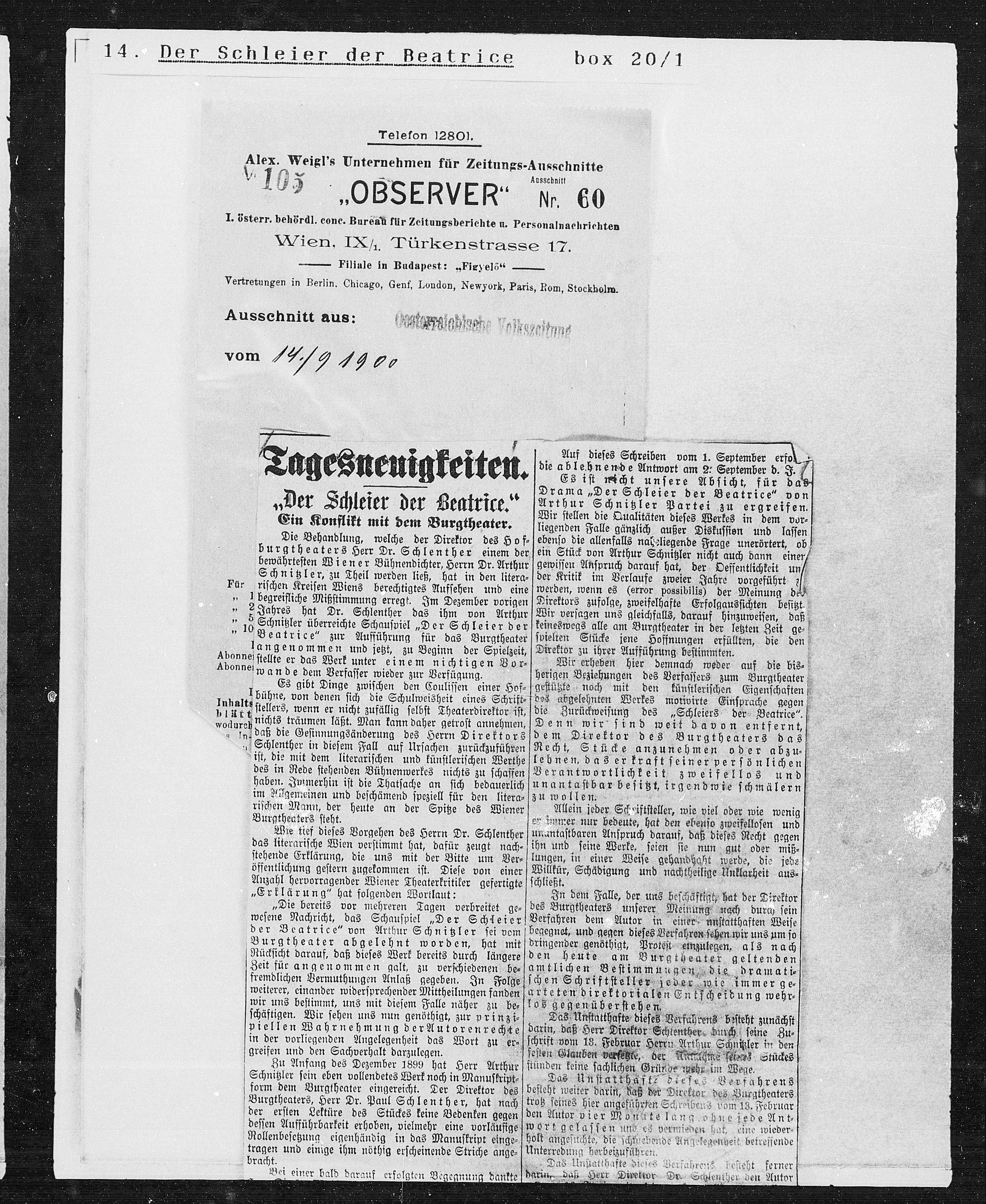 Alex. Weigl's Unternehmen für Zeitungs-Ausschnitte