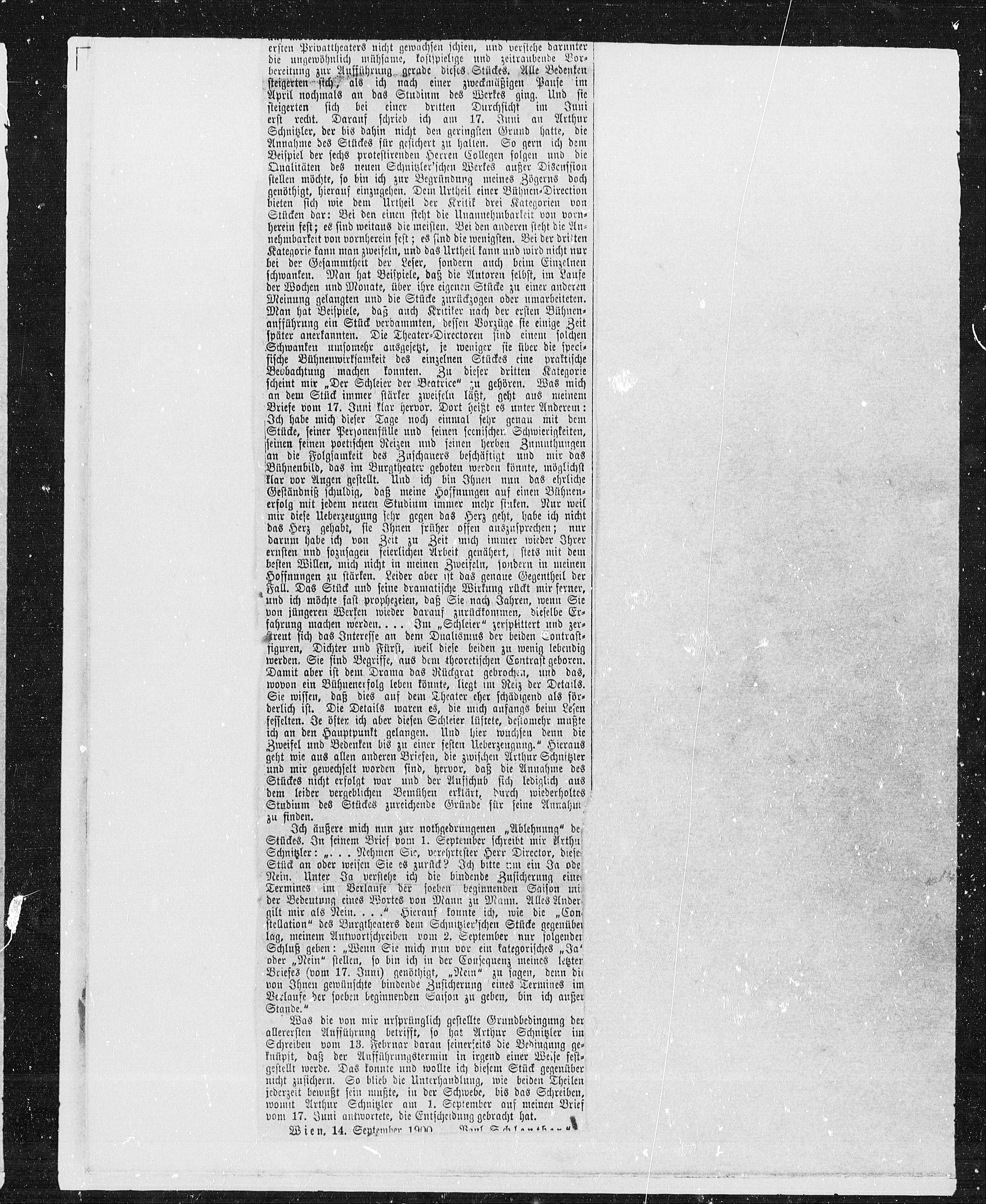 Schnitzler: „. . . Nehmen Sie, verehrtester Herr Director, diese