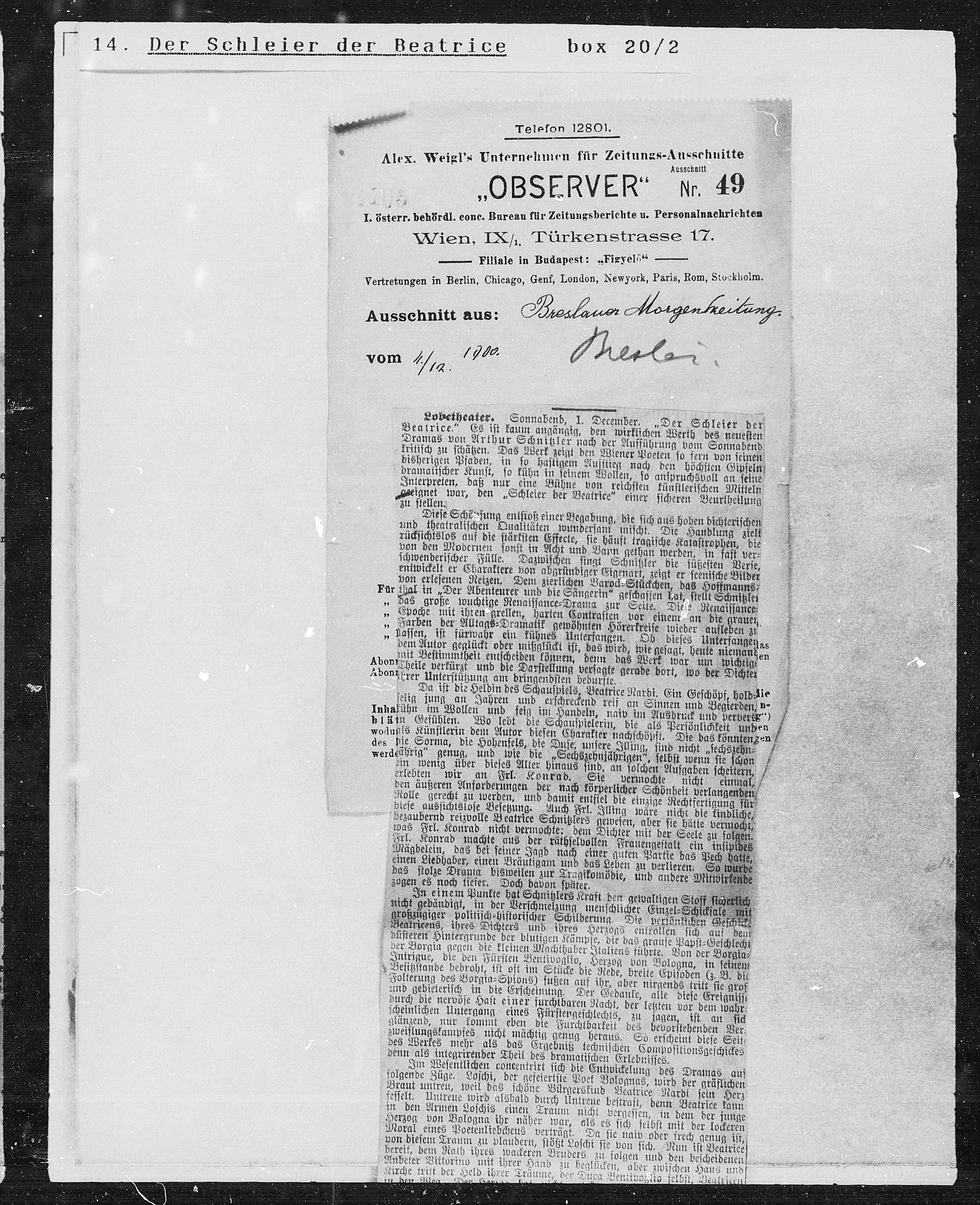 Alex. Weigl's Unternehmen für Zeitungs-Ausschnitte
