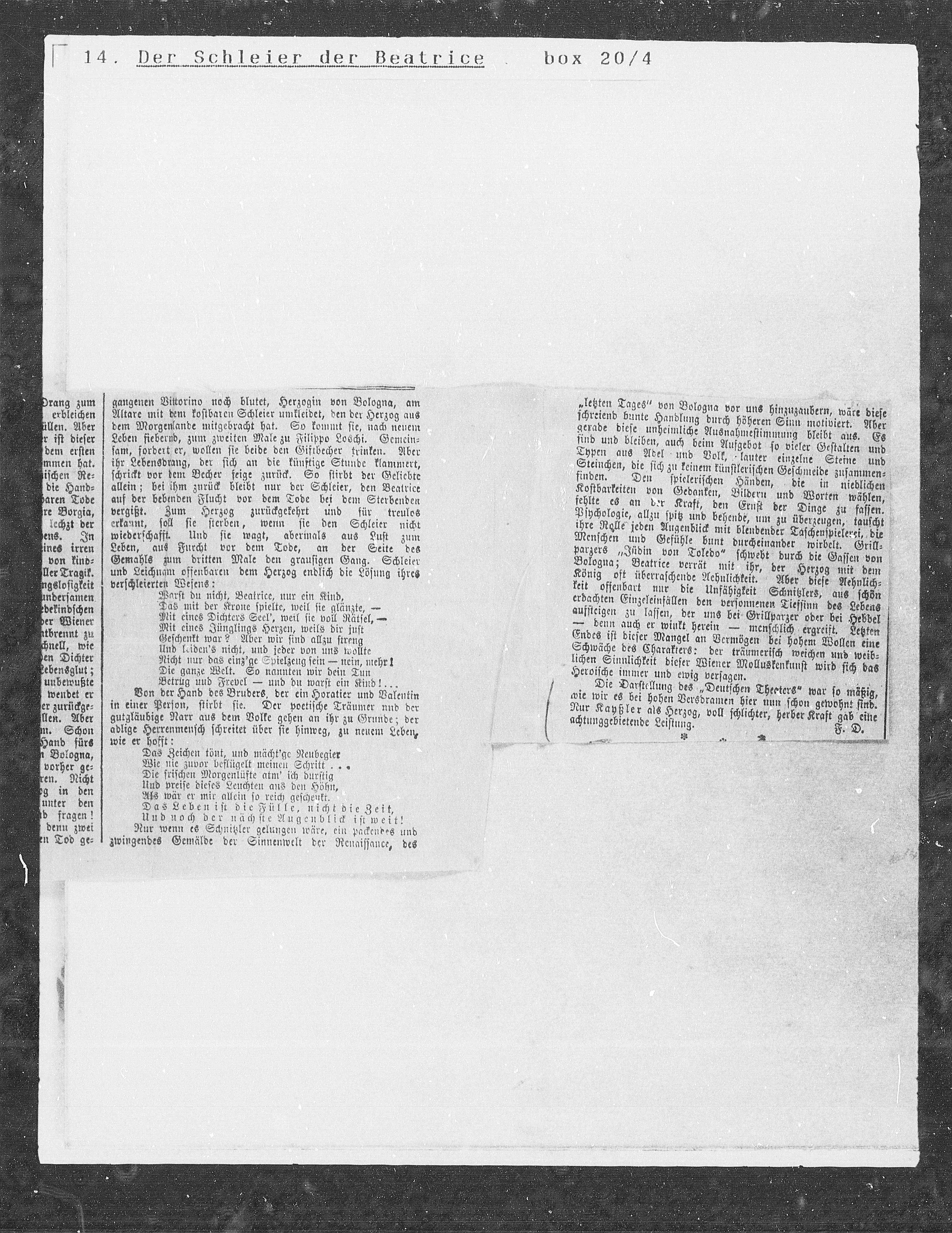 allein; bei ihm zurück bleibt nur der Schleier, den Beatrice
