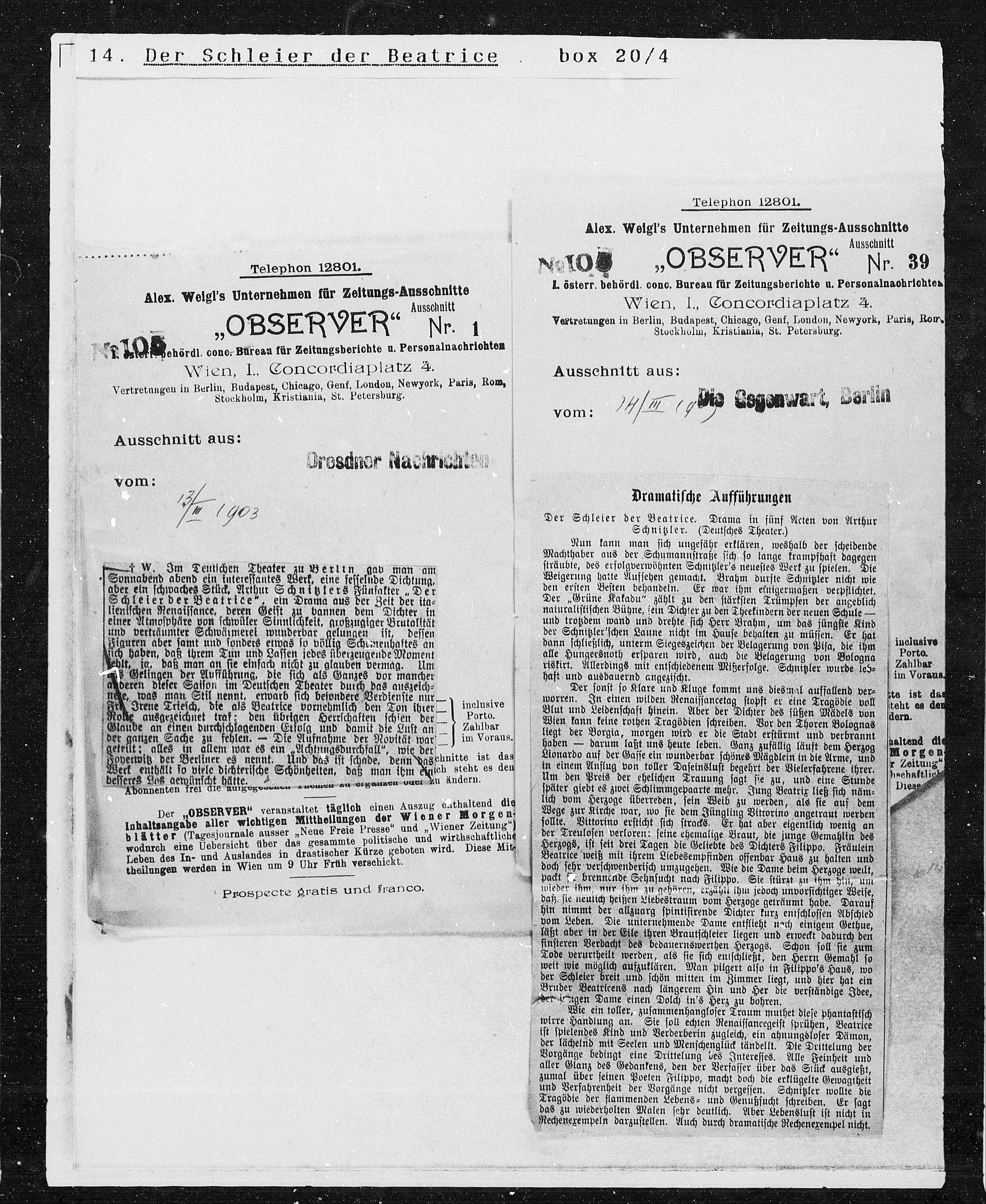 Alex. Weigl’s Unternehmen für Zeitungs-Ausschnitte