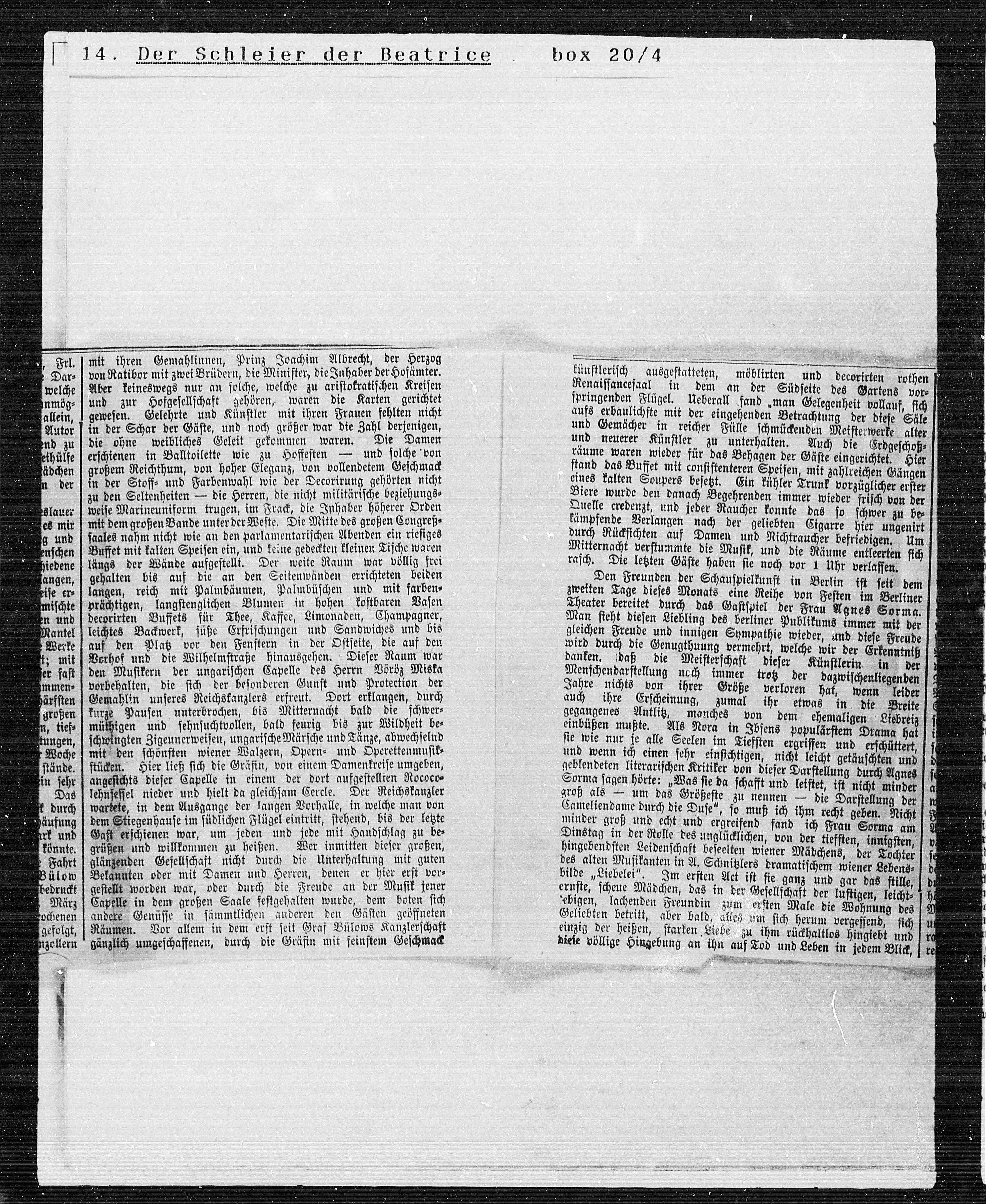 Theater bereitet durch das Gastspiel der Frau Agnes Sorma.