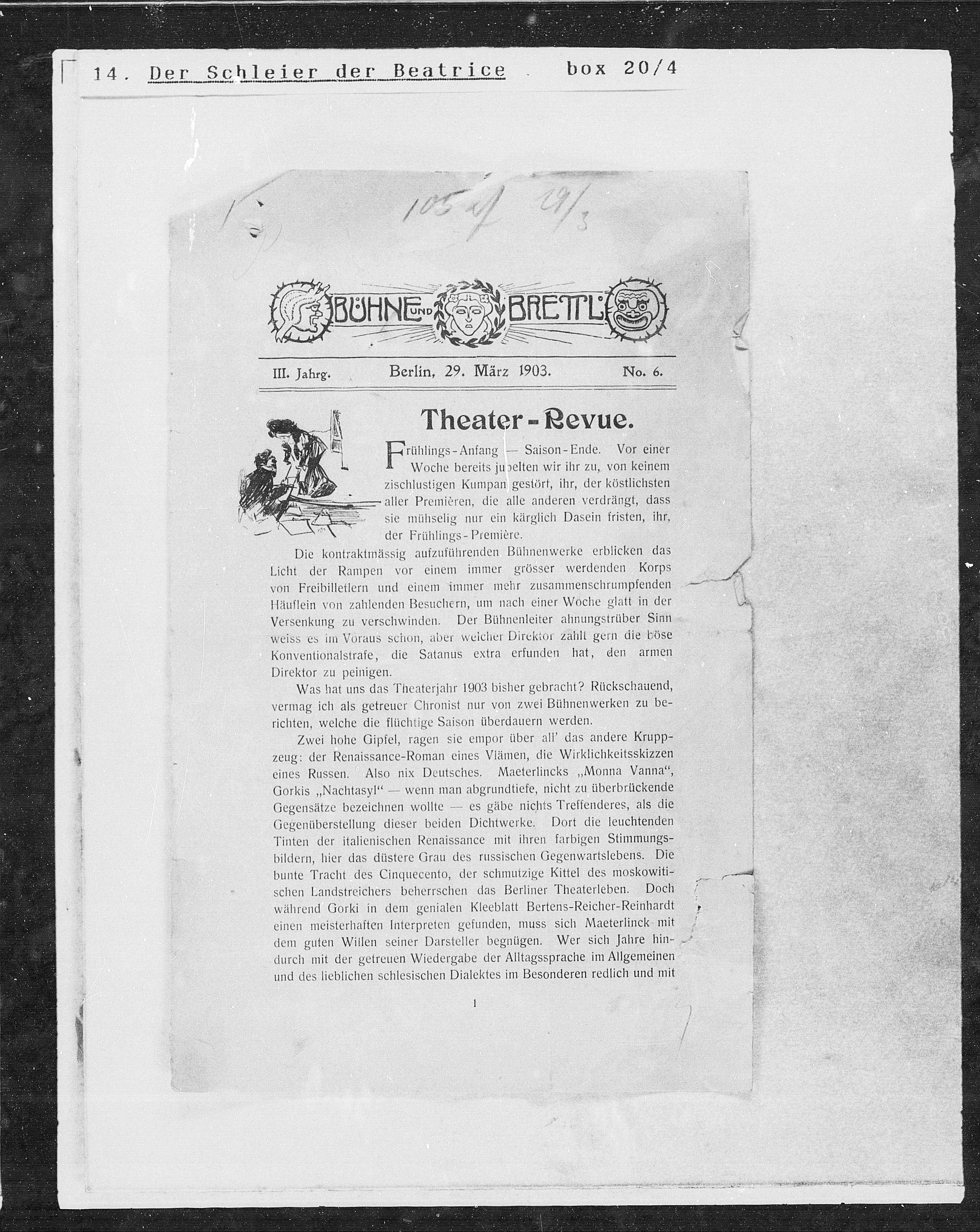 Was hat uns das Theaterjahr 1903 bisher gebracht? Rückschauend,