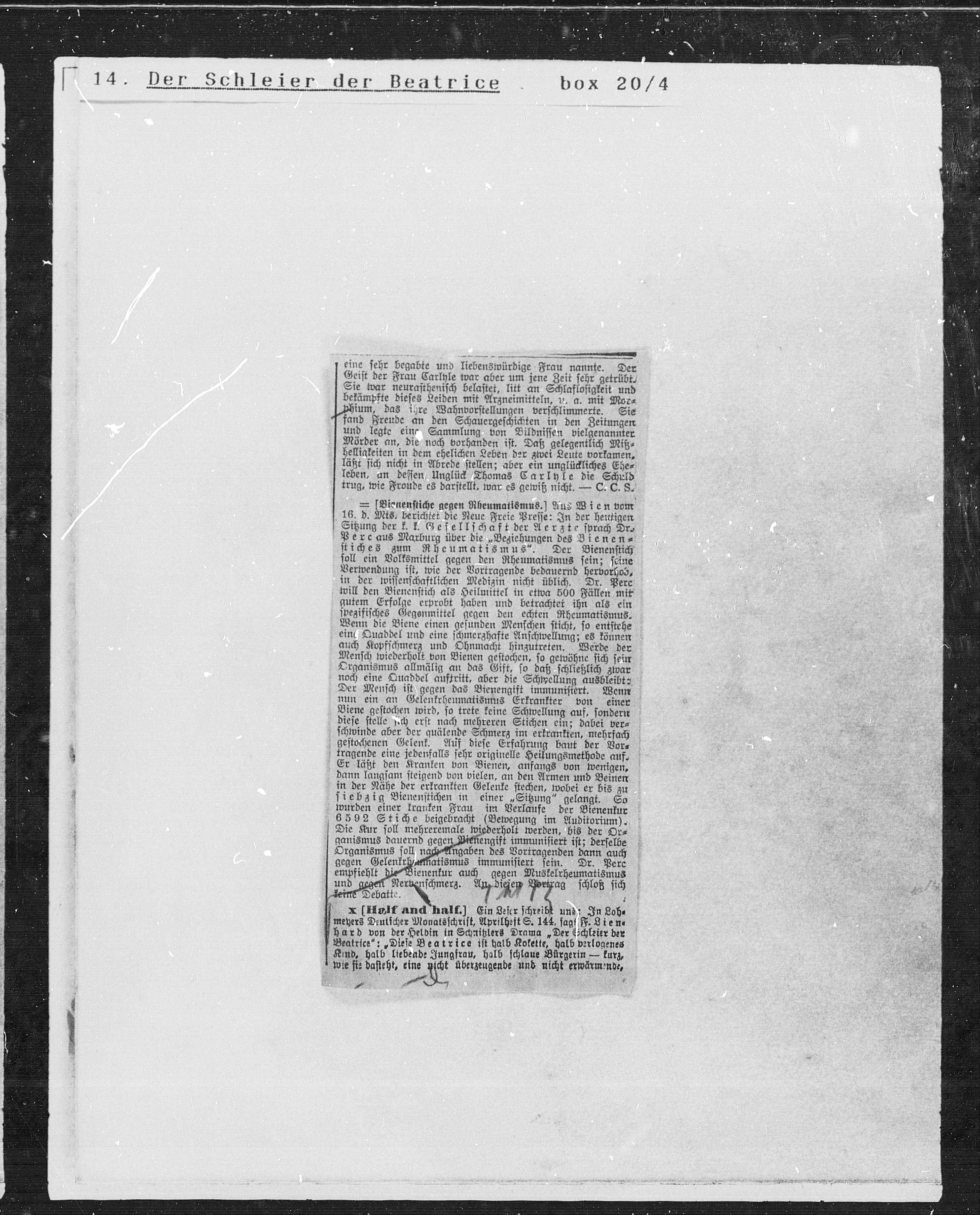 = Bienenstiche gegen Rheumatismus.] Aus Wien vom
