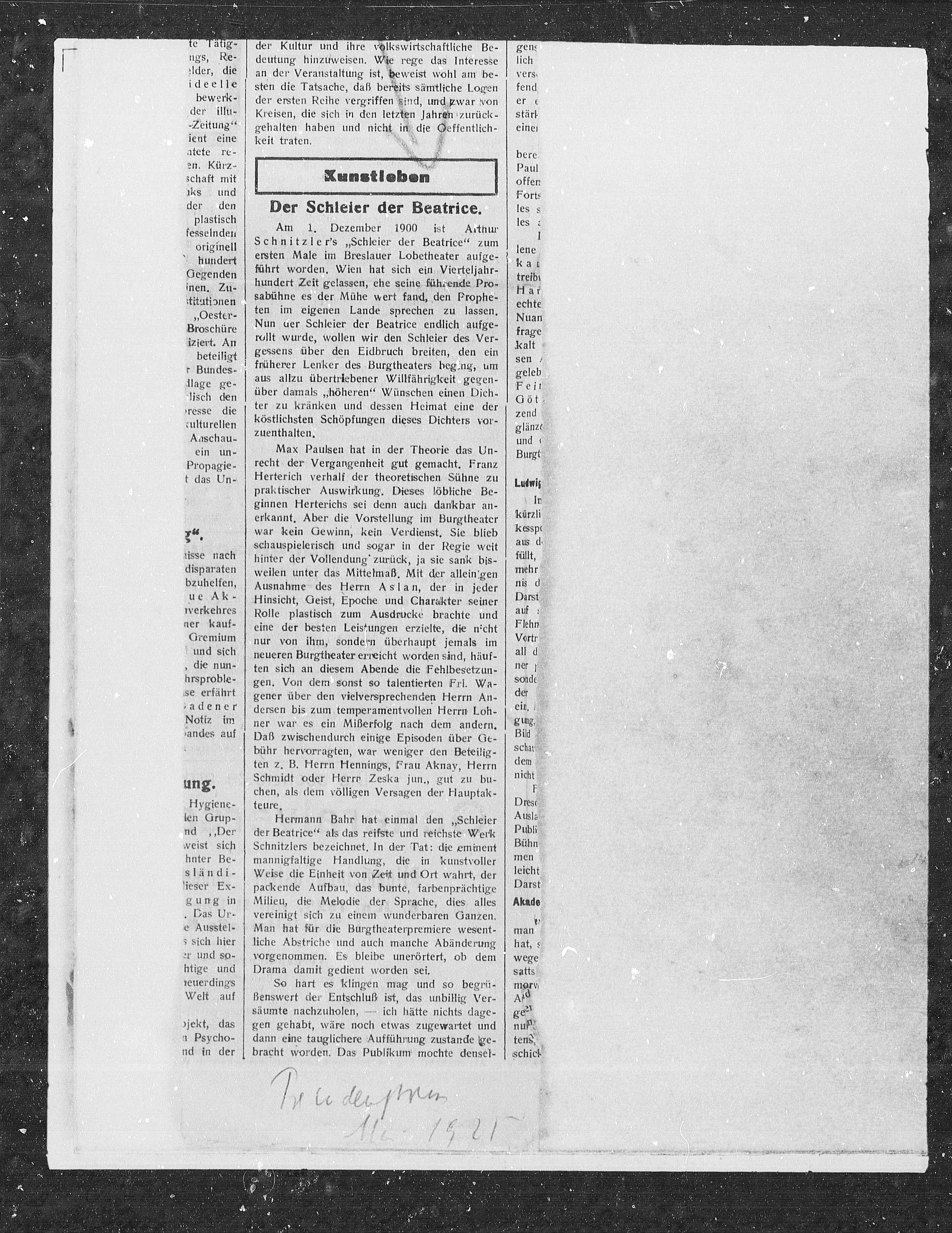 Schnitzler’s „Schleier der Beatrice“ zum