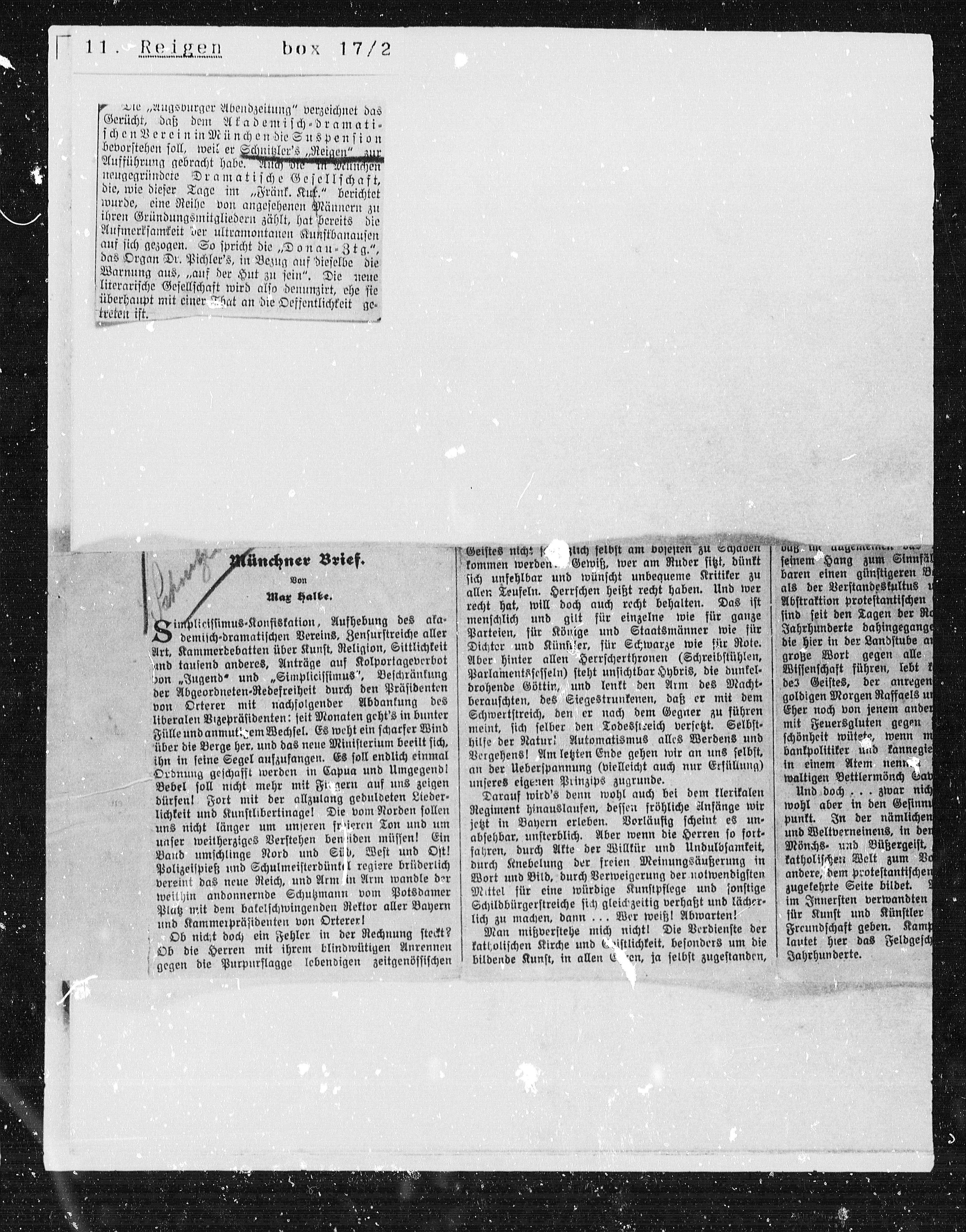 bevorstehen soll, weit er Schnitzler's „Reigen“ auf