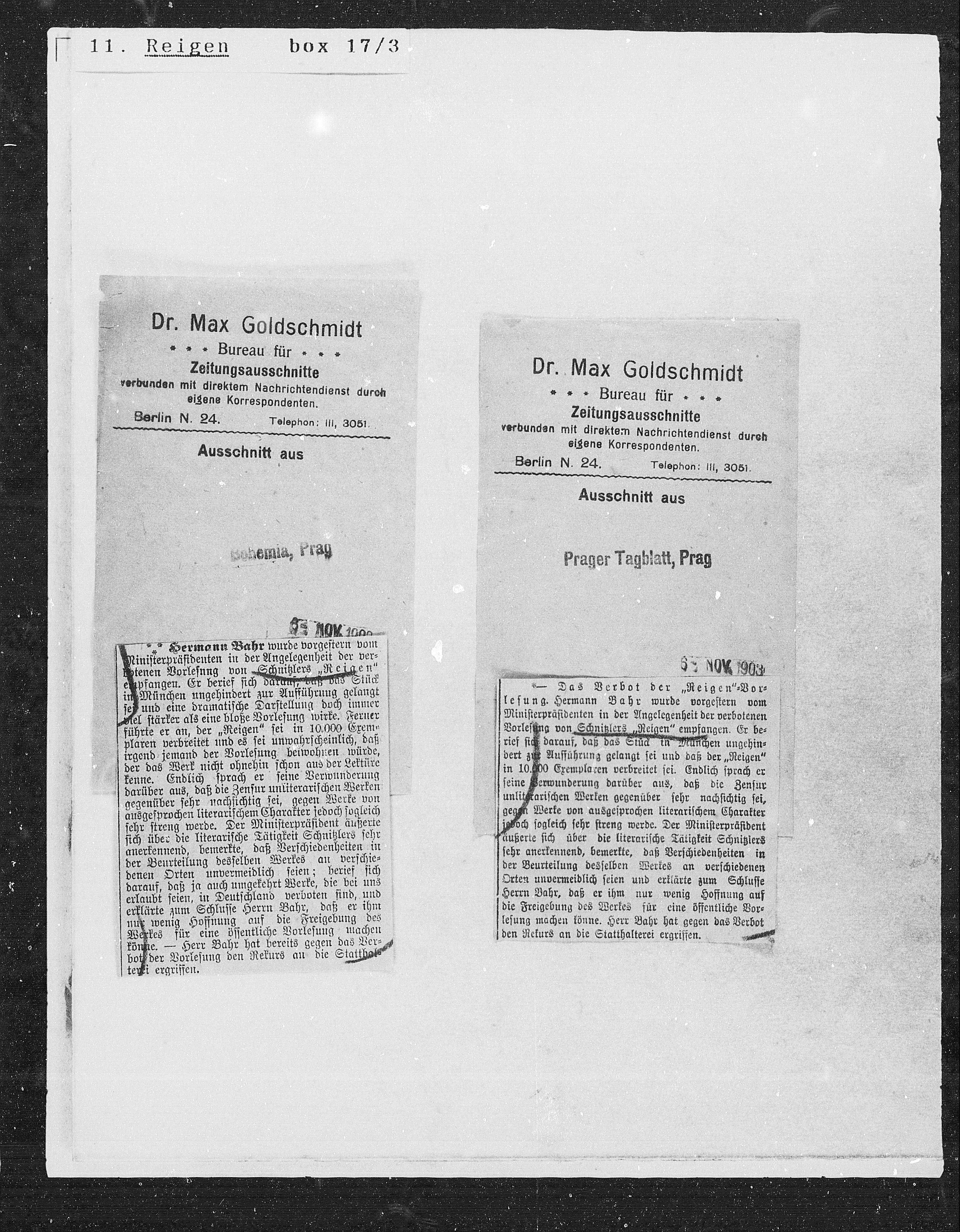 1— Das Verbot der „Reigen“=Vor¬