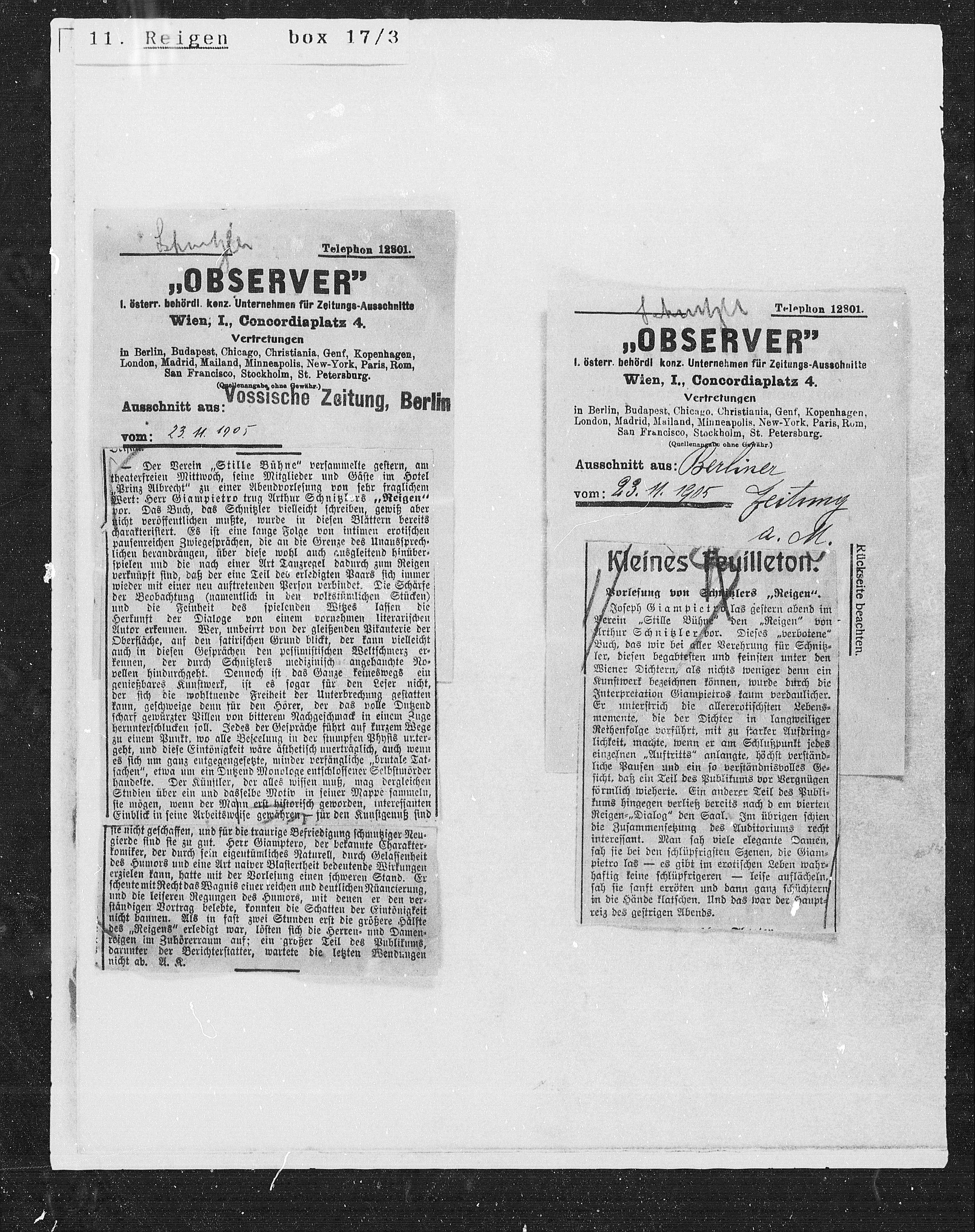 I. österr. behördl konz. Unternehmen für Zeitungs-Aussohnitte
