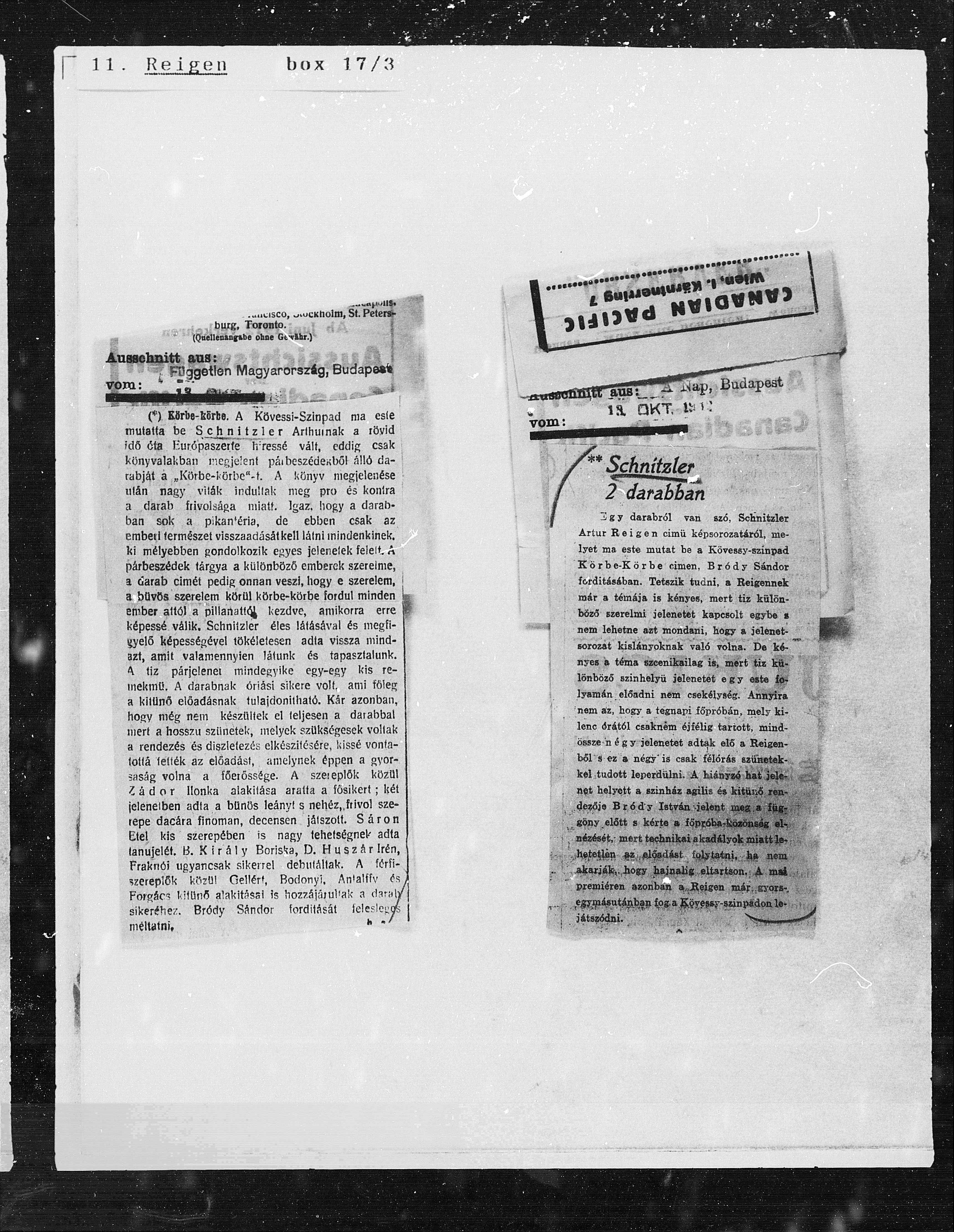 Egy darabröl van szö, Schnitzler