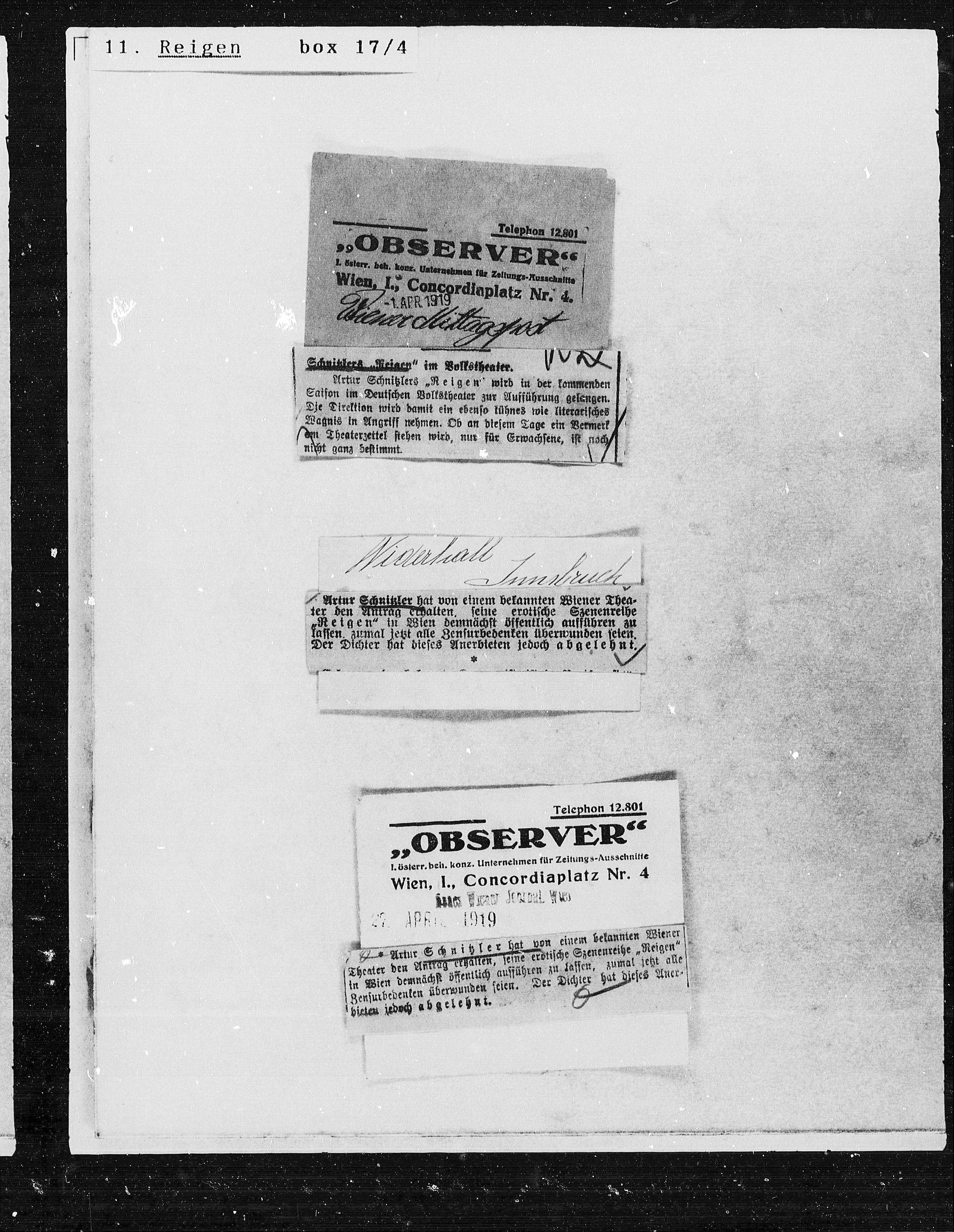Reigen“ in Wien demnächst öffentlich aufführen zu