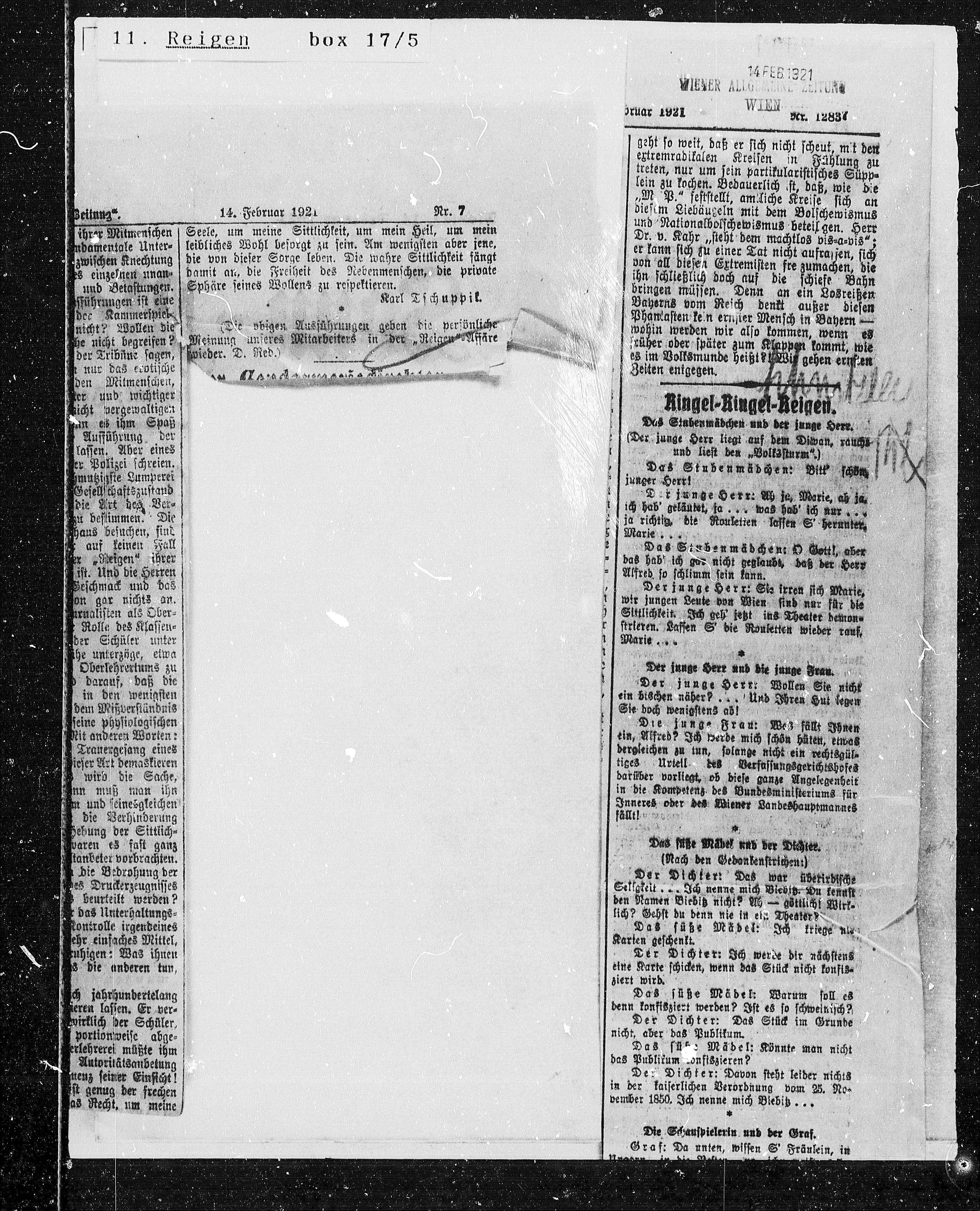 Meinung unseres Mitarbeiters in der „Reigen“=Affäre