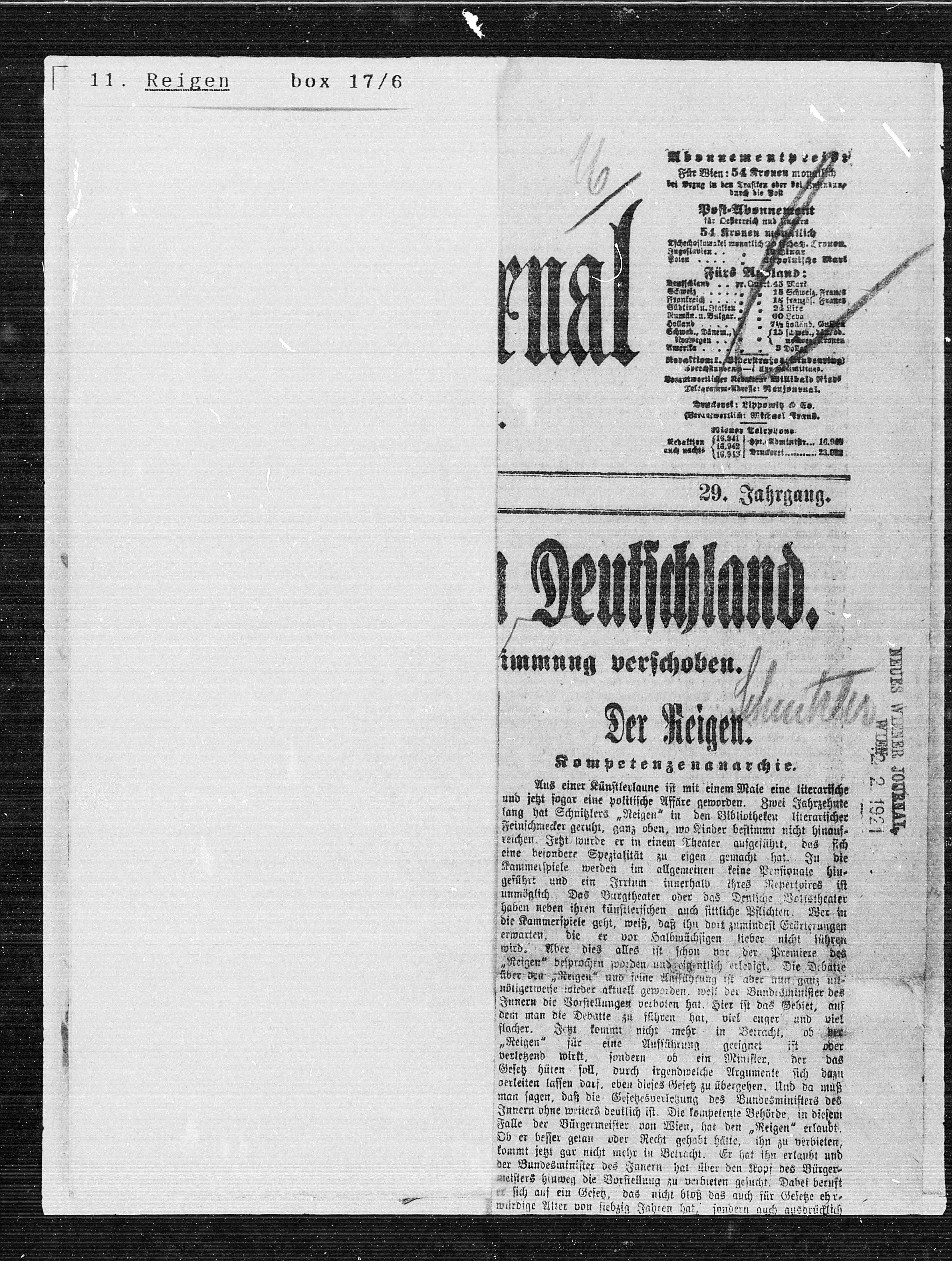 Falle der Bürgermeister von Wien, hat den „Reigen“ erlaubt.