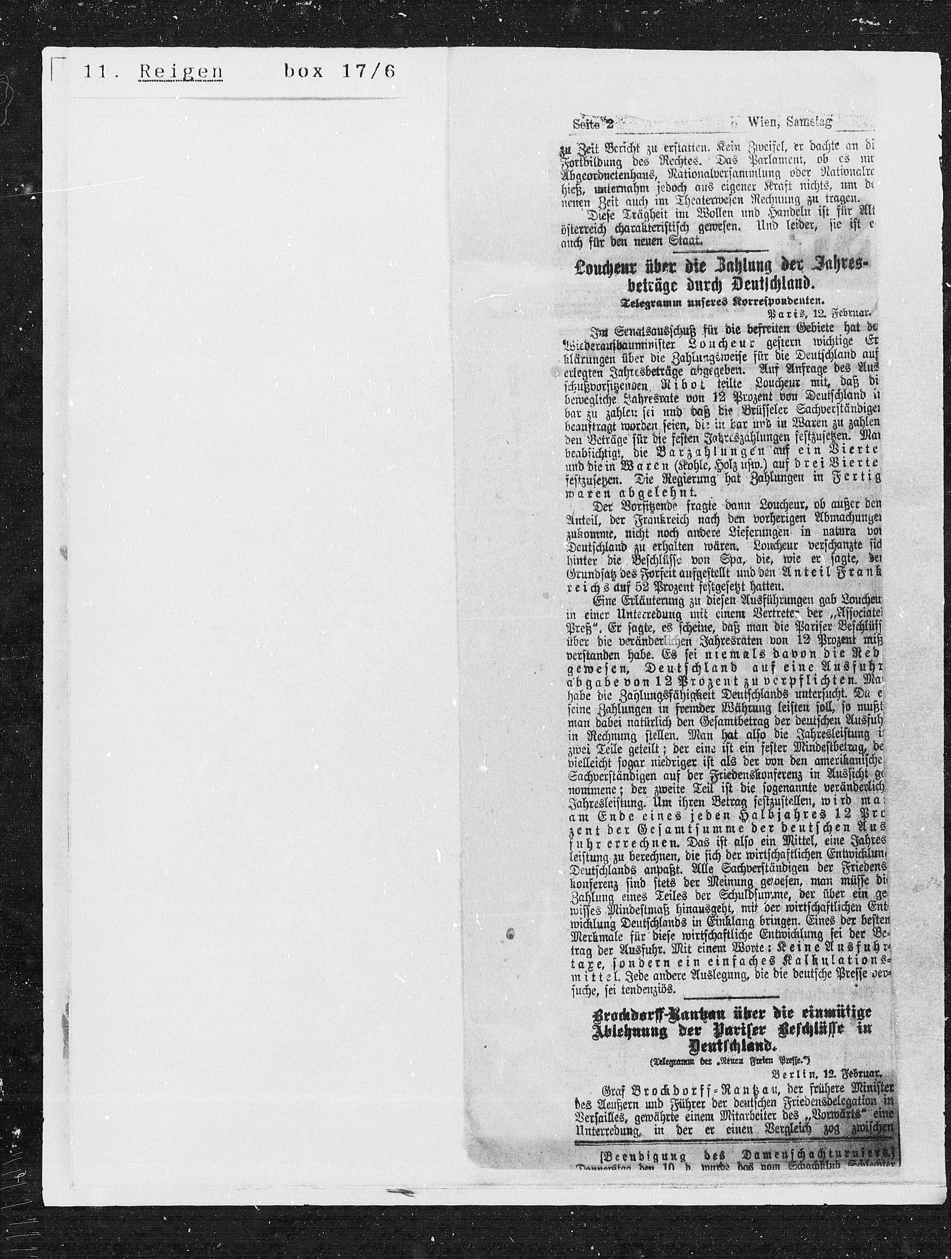 Deutschland zu erhalten wären. Loucheur verschanzte sic